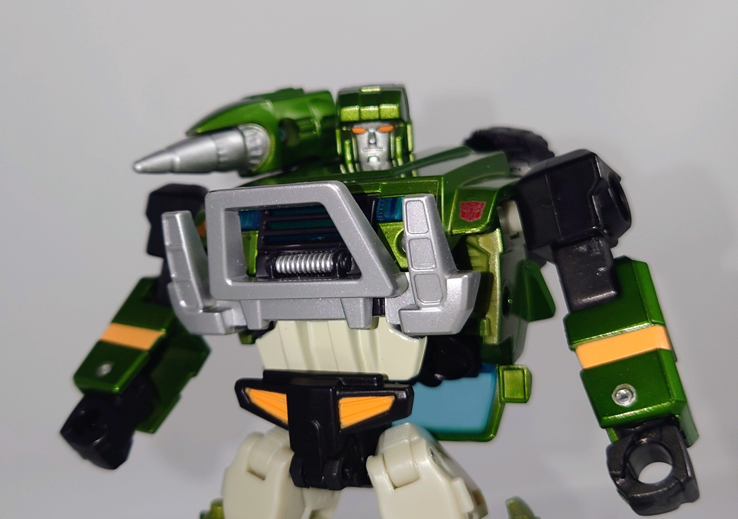 頭部。玩具版G1ハウンドのイラストを意識したのか黄色の塗装に