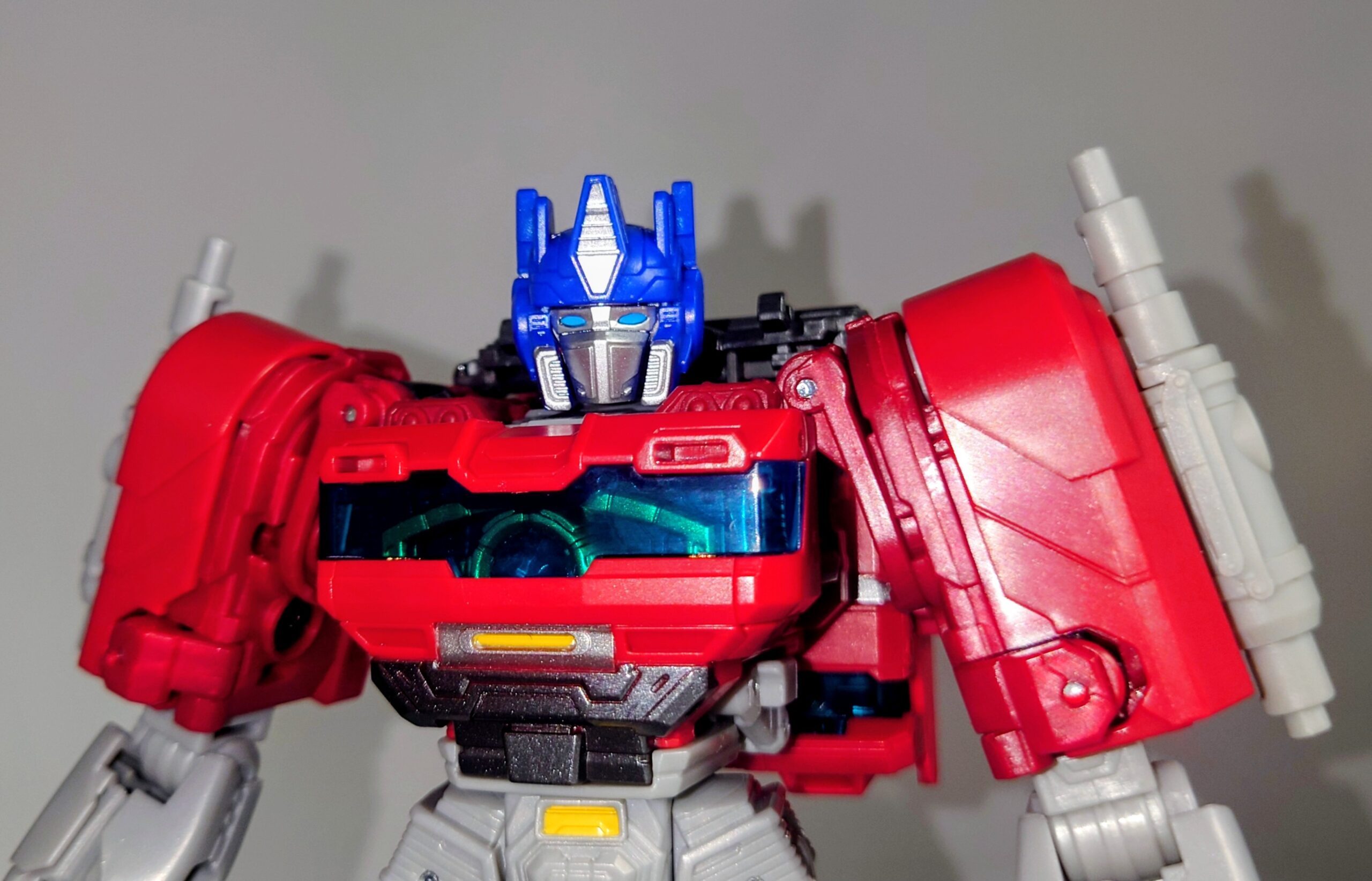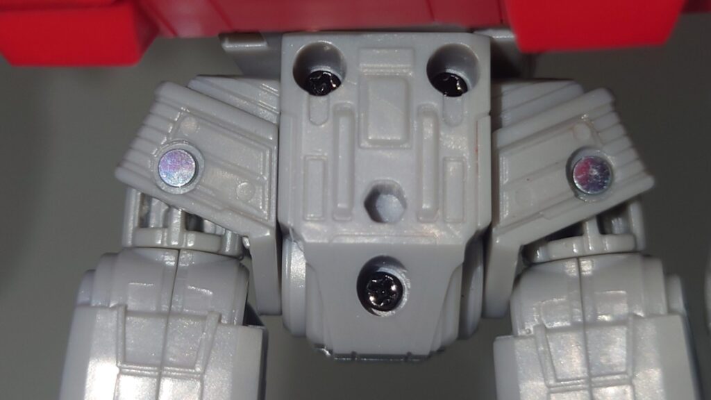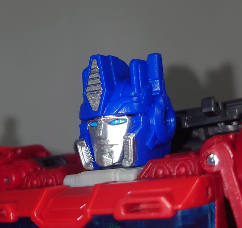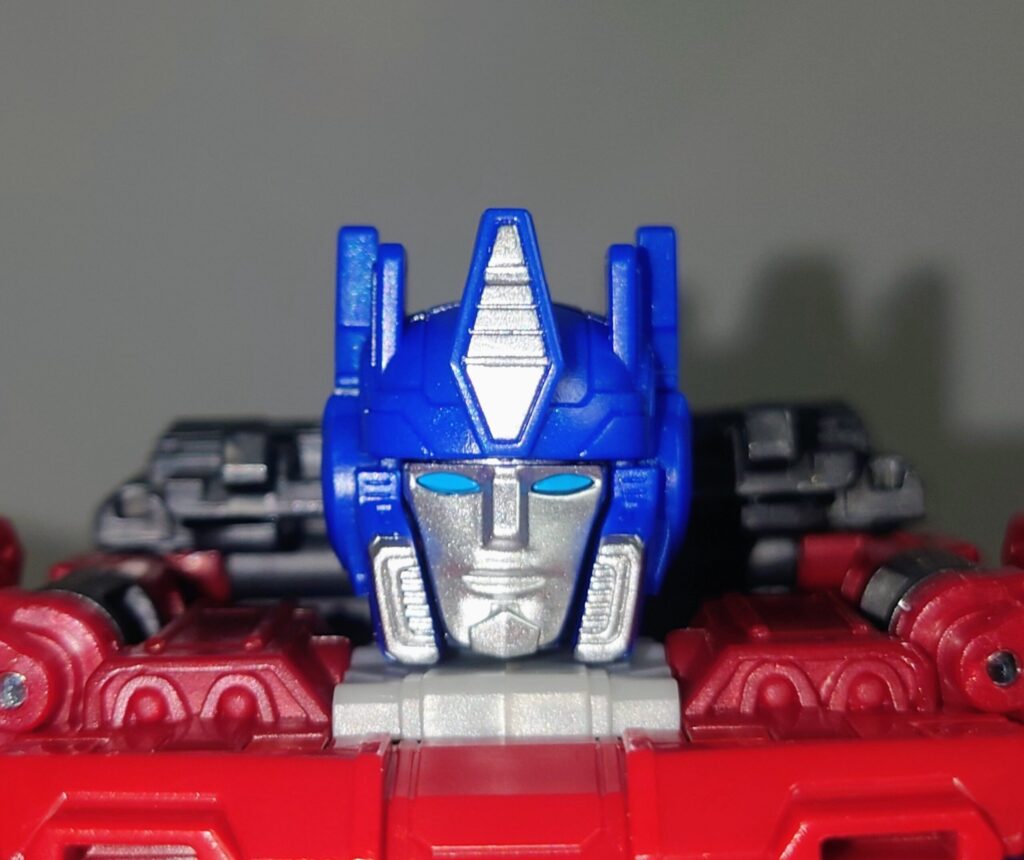 頭部。目の部分が大きめで優しい目つきのフェイス、本作のオプティマスは元々民間人だったゆえでしょう