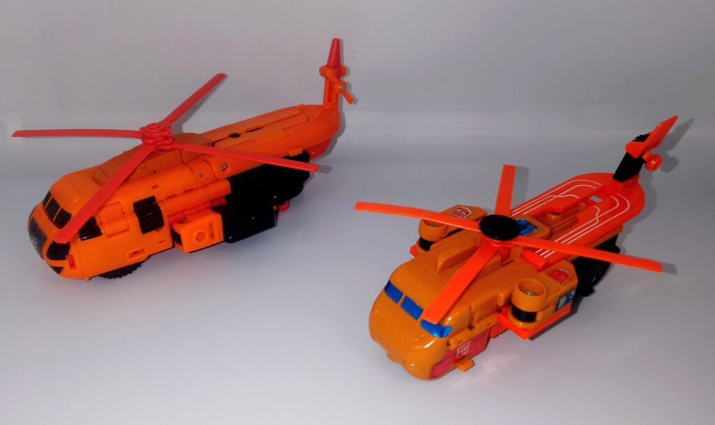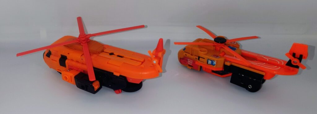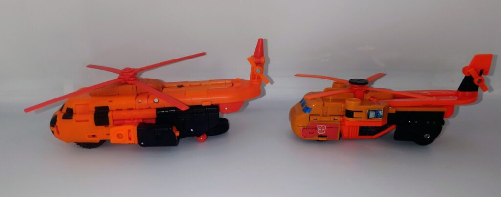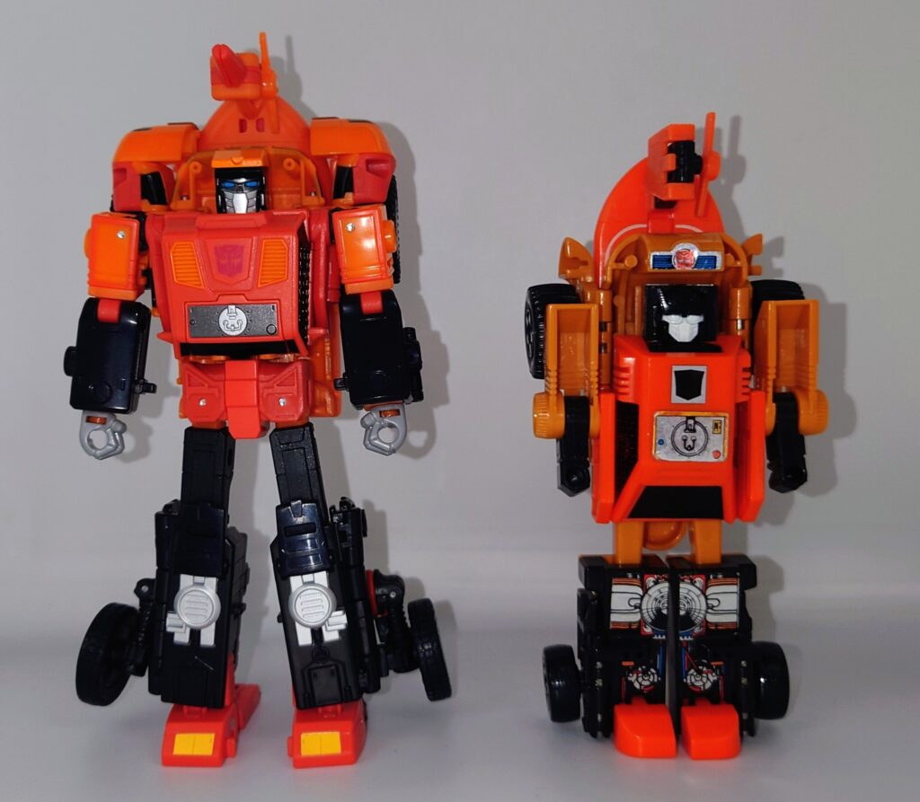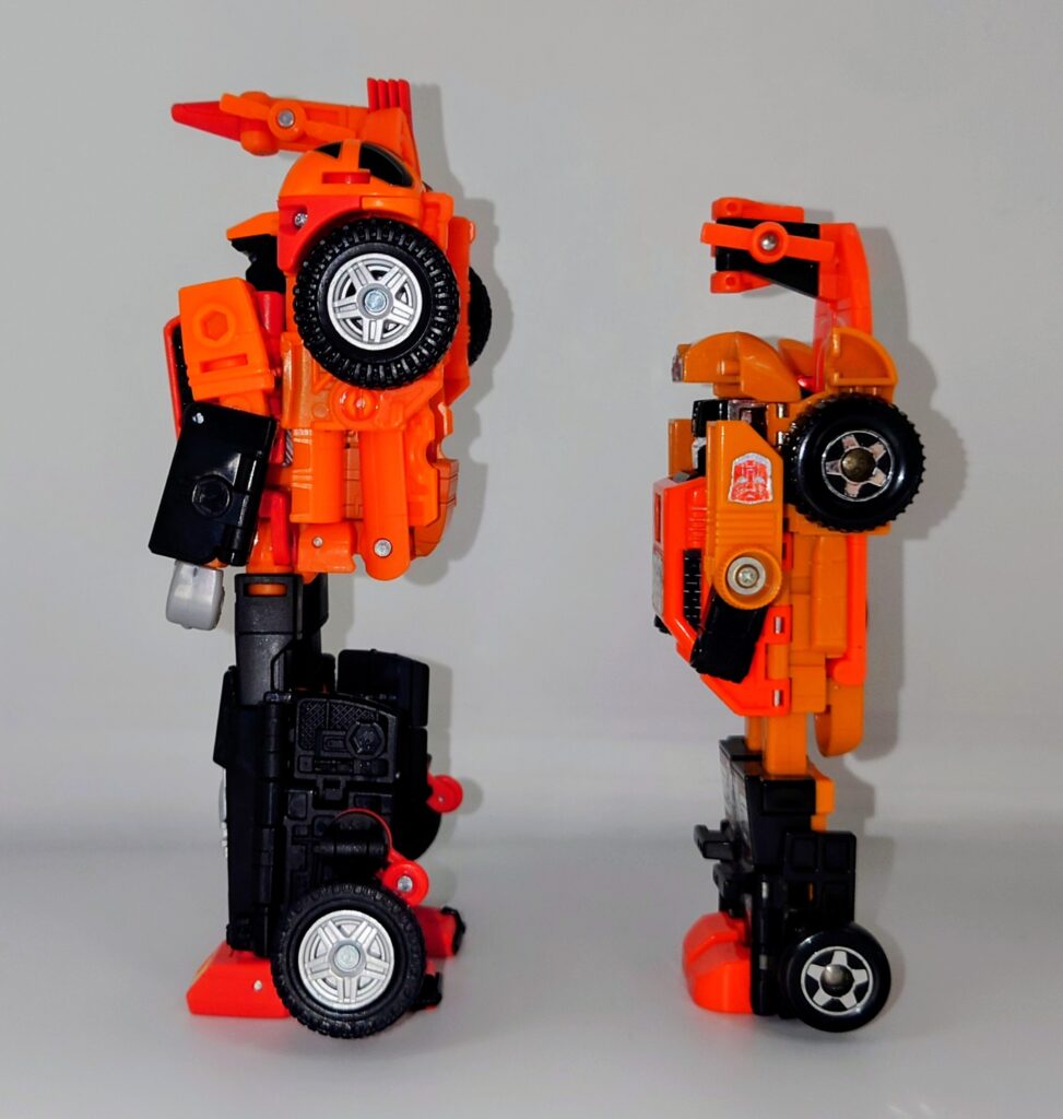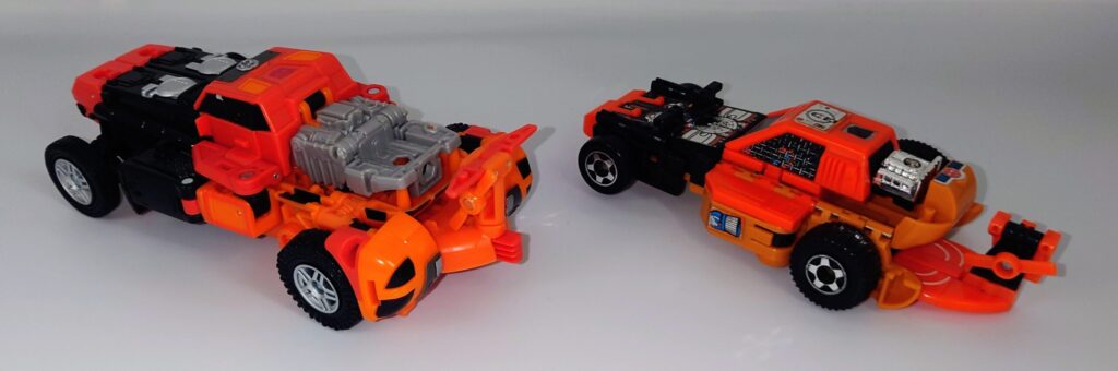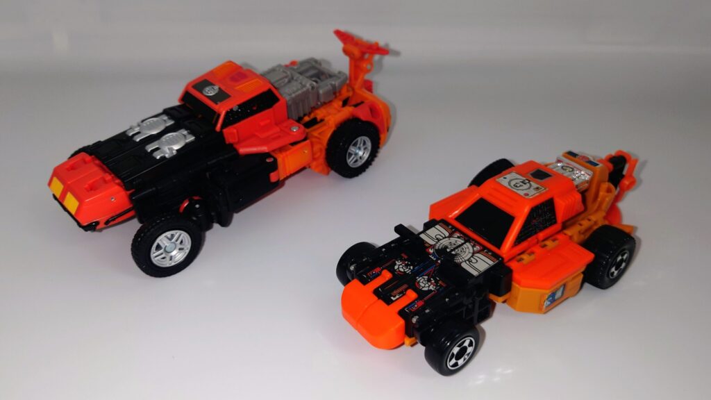 レガシー版と。デザインは踏襲しつつ肩などがちゃんとした造形になりました。この比較で面白いと思ったのがビークル2形態でかなりシルエットが似通っていただけにロボットモードだけは現代風にアレンジされているということですね