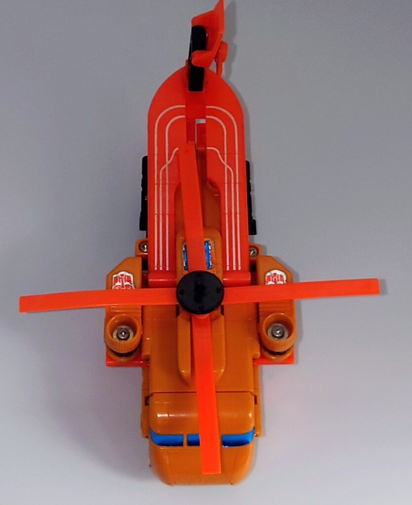 ローターは勿論回転可能。レガシー版もローターの疊み方は同じなのは感動しますね。レジェンズ版はジャイロヘリだったので収納はなし