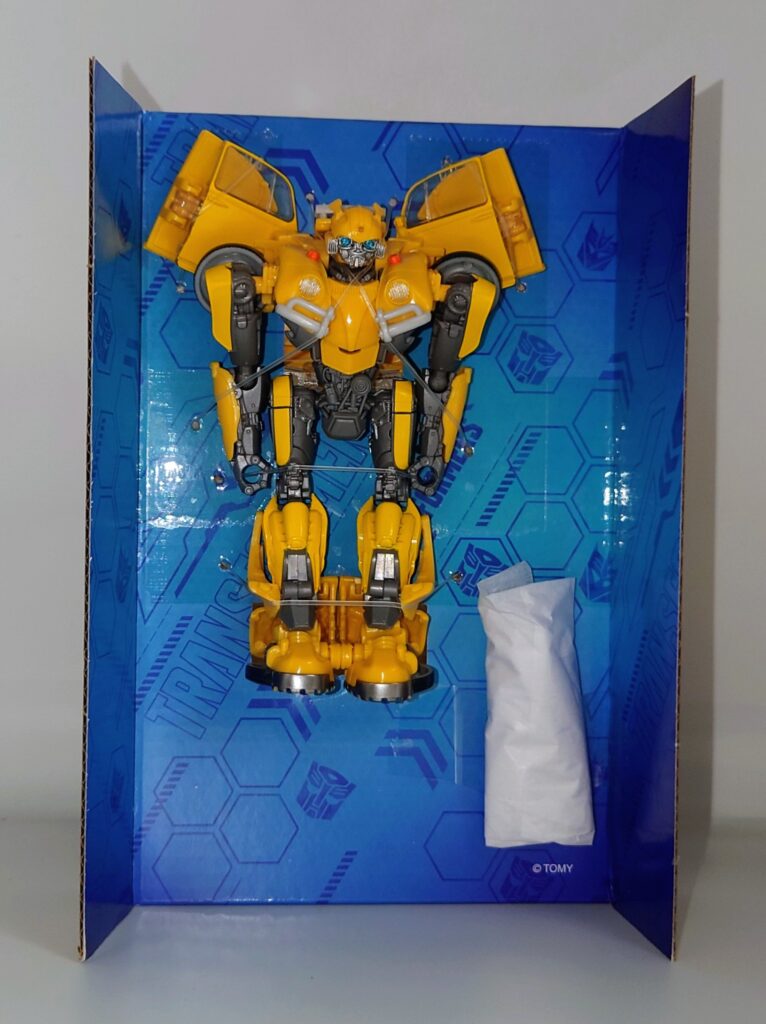 2018年 タカラトミーより発売価格11000円 ベトナム製映画「バンブルビー」で主役を努めたトランスフォーマーのハイグレードモデルを紹介!パッケージビークルモードヘッドライトやテールランプもクリアパーツです窓のクリアブルーは濃いめの、フォ...