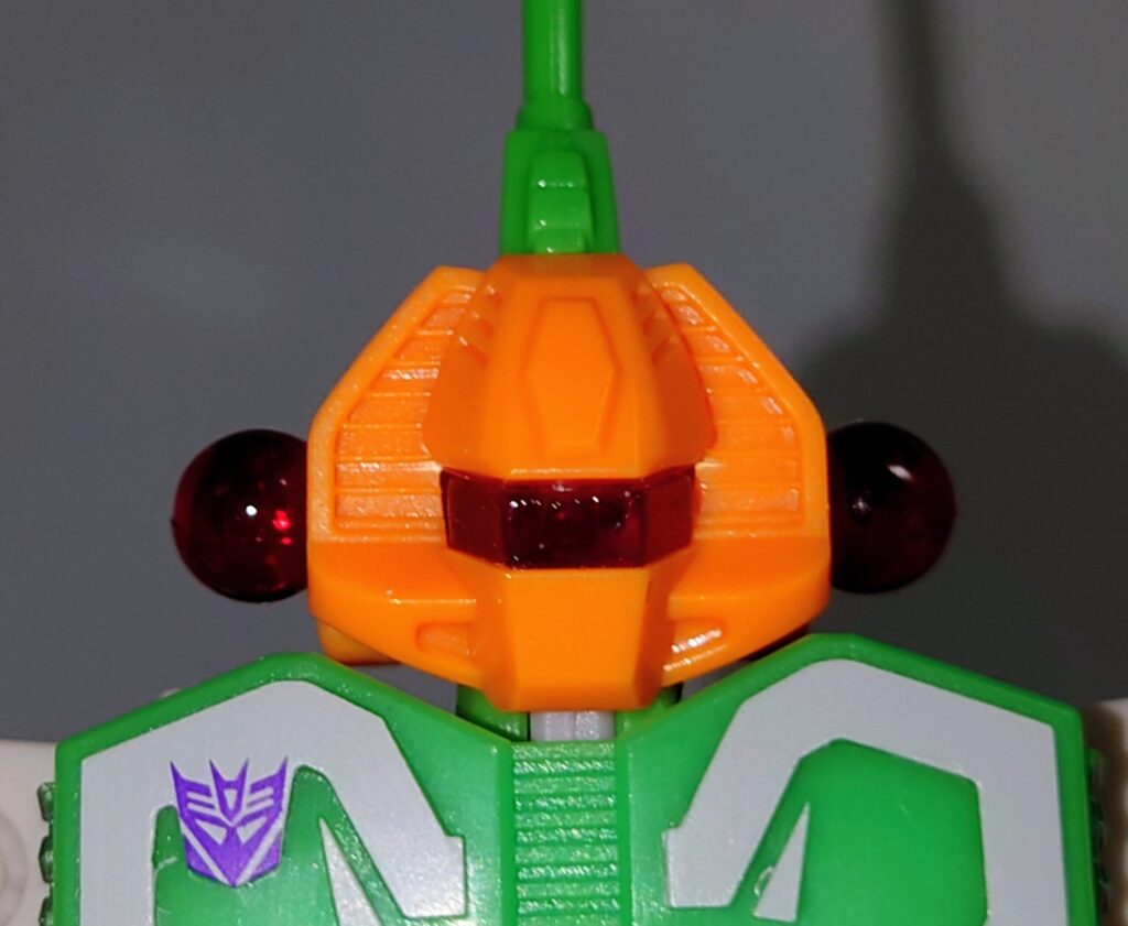 頭部。ロボットモードのそれをひっくり返したデザインですがそれらしく見えます。下から見ると口吻が造形されています