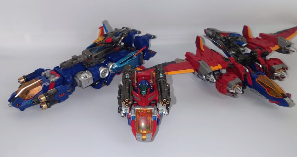 3機のコクピットブロックを結合させるとボレットファイターモードになります