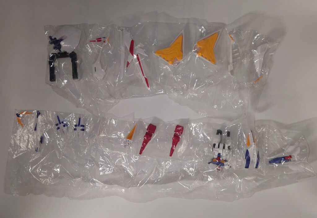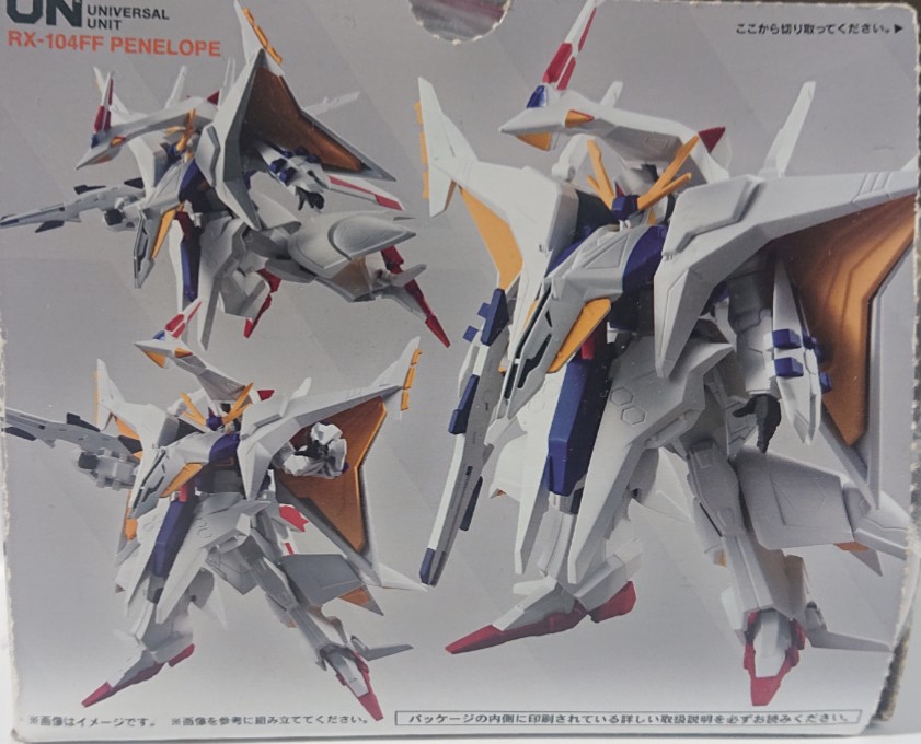 UN2版の発売当時の定価は4,180円(税込)。食玩としては高価ですがHGUC版(定価7,700円)の約半額という設定です。サイズはHGUCが全高約26cmという規格外の大きさなのに対しUN2は約12cm(頭頂高)程度。しかし、この『小ささ』こそが利点でHGUC版は飾る場所に困るほどの巨大さ(特に奥行き)がありますが、UN2版はデスクサイドに気軽に置けるサイズ感ながらもペーネロペー特有の怪鳥のようなシルエットを完璧に再現しています