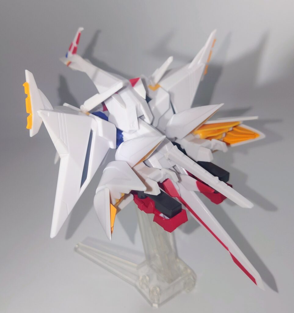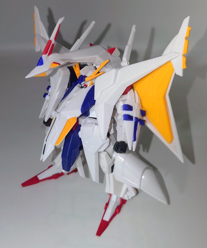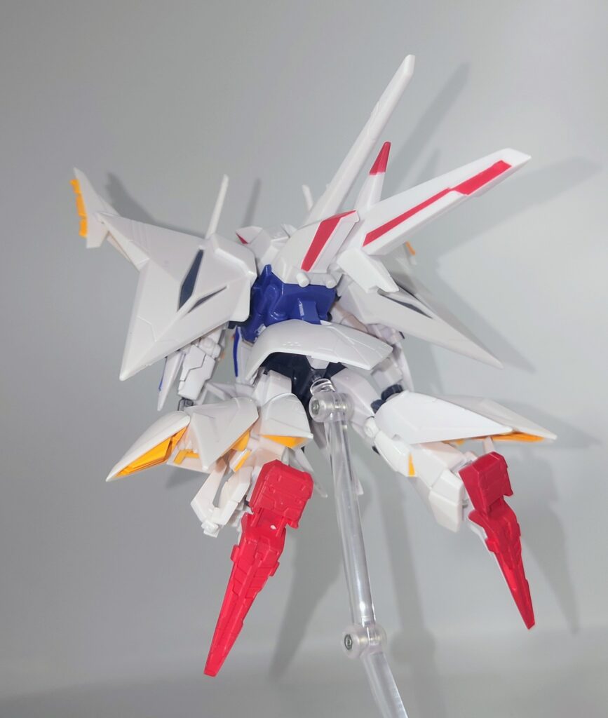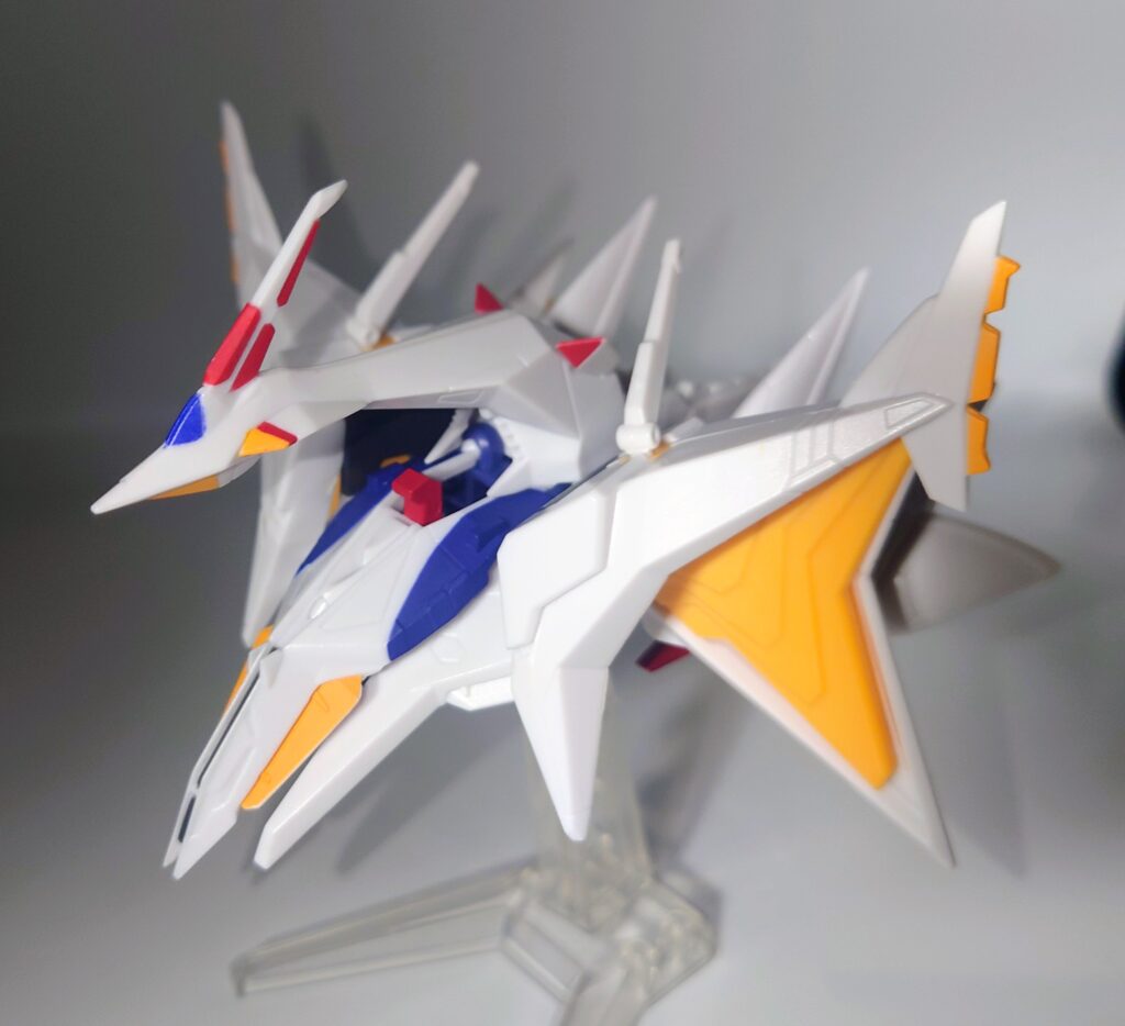 全身が硬質なABS素材で構成されているため、小スケールならではのエッジの鋭さが際立っており最初から一部塗装済みという仕様も、組み立ての手間を省きたい層には嬉しいポイントです。着目すべきは小さいながらもオデュッセウスガンダムへの換装ギミックを最小限の差し替えで再現している点は執念すら感じます