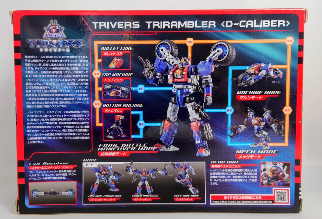 近年のダイアクロンは『タクティカルムーバー(ヴァーサルター系)』が主流となり、定価も8,000円〜9,000円台(大型ユニット付きで18,000円前後)と以前より手に取りやすい価格帯のラインナップが増えました。一方でこのトライランブラー(Dキャリバー)は当時の定価で13,200円(税込)となり一見すると現在の標準的なムーバーより高価に感じますが、実際に手に取るとその完成度の高さとプレイバリューの密度に驚かされます。
