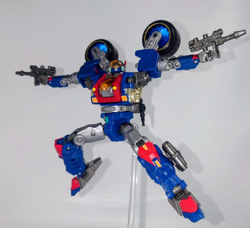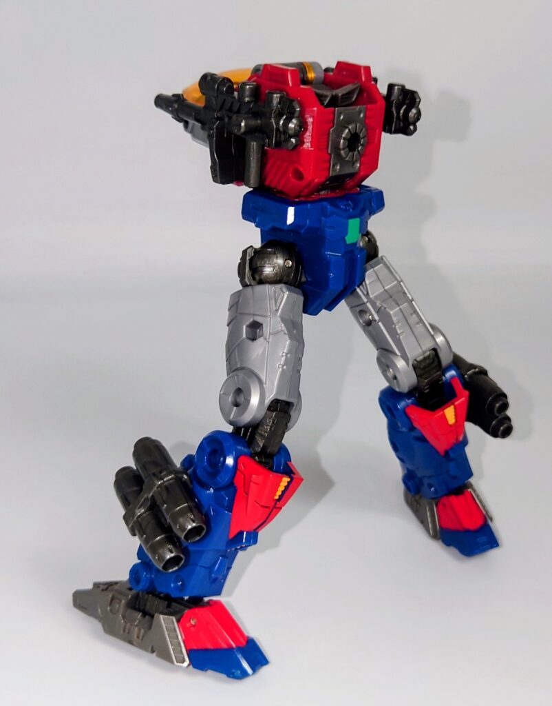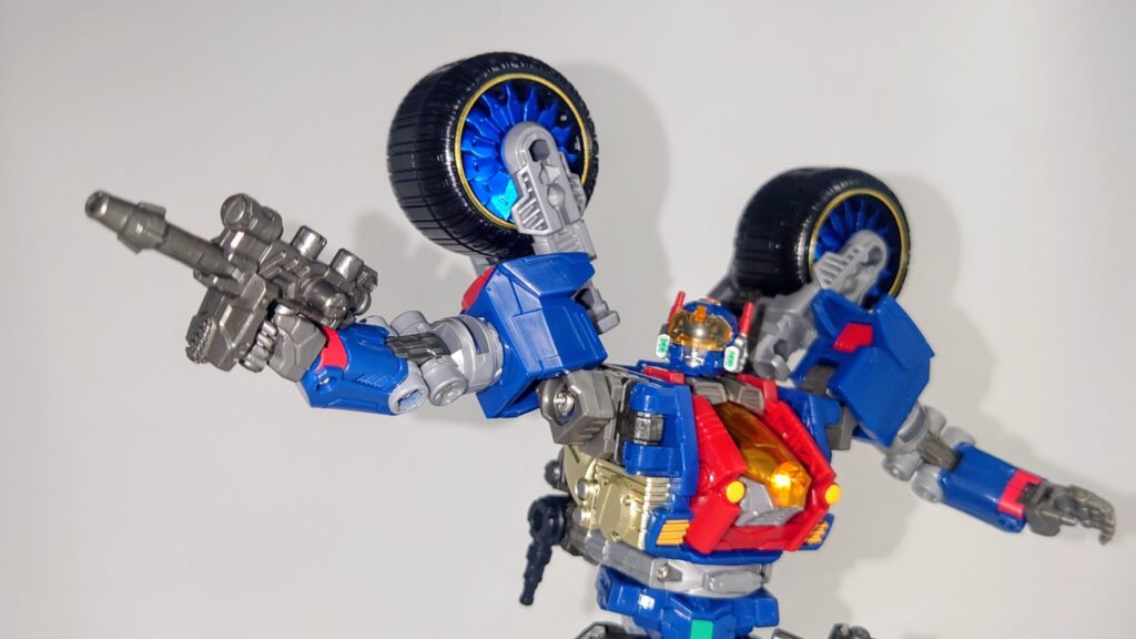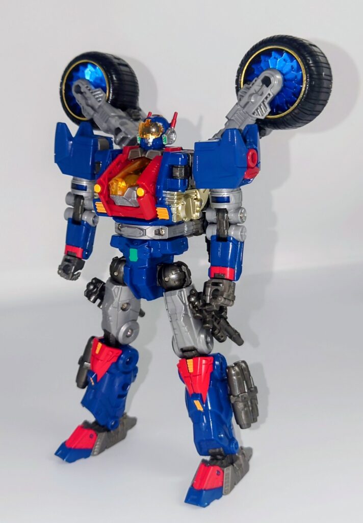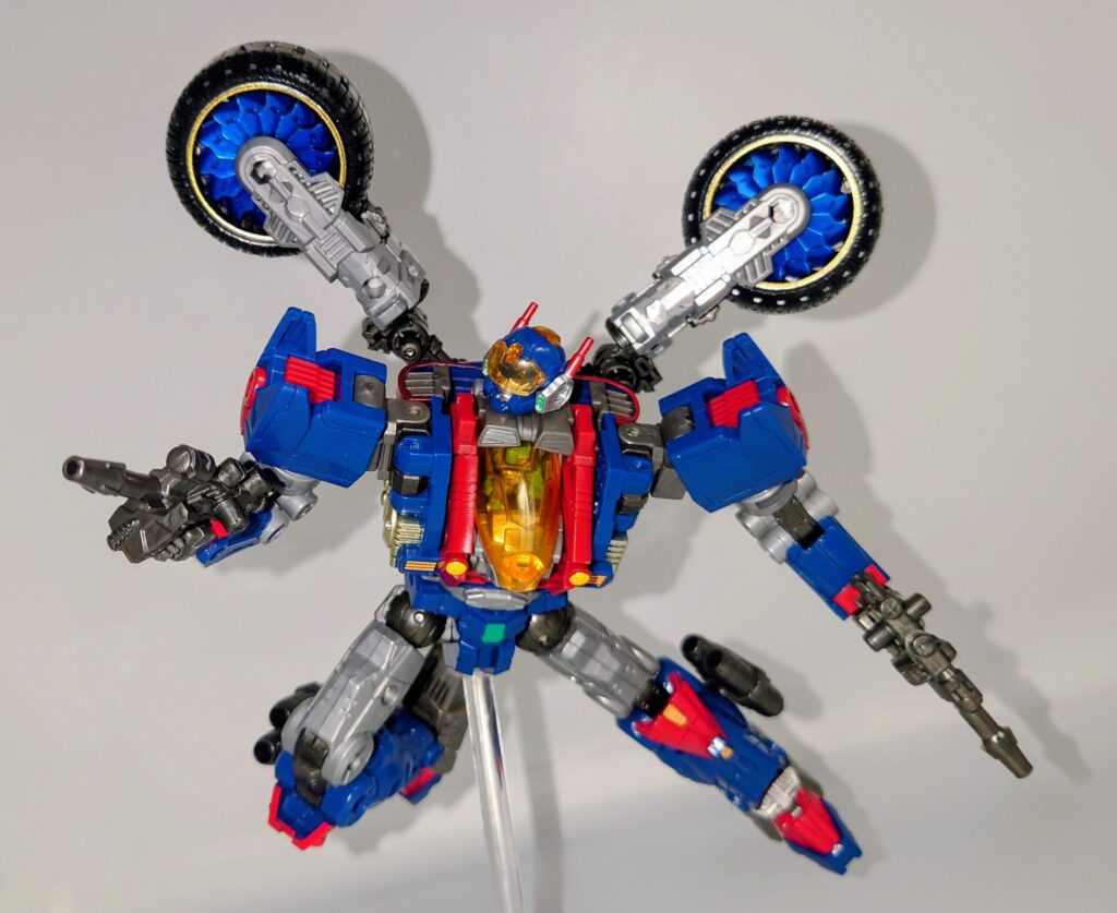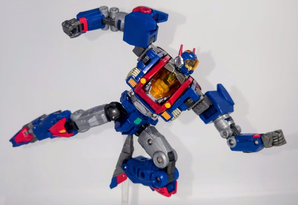 ②変形ギミックの複雑さ: マシンモード、メックモード、そして人型の決戦モードへと組み換えでガラリとシルエットが変わるプロセスは今のムーバー系よりも一段上の複雑さと楽しさを提供してくれます。