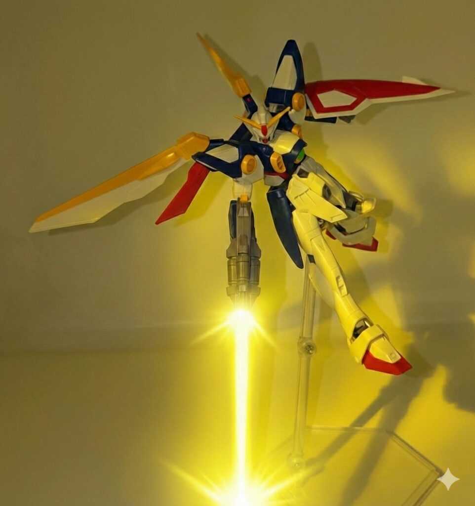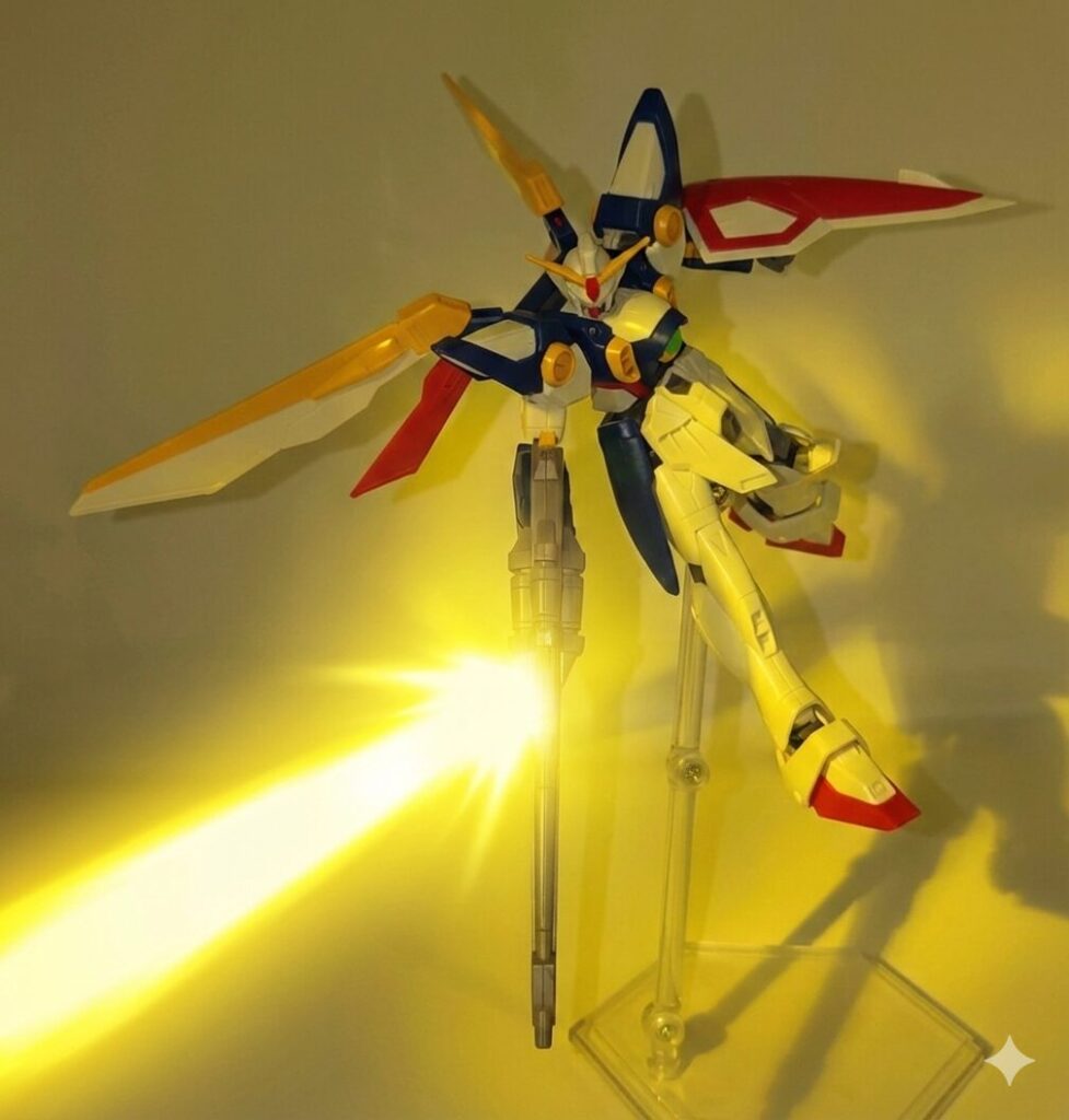 『新機動戦記ガンダムW』30周年の年に発売された本キットはプラモデル最王手のバンダイの技術を注ぎ込んだまさに次世代のスタンダードを象徴するキットとなりました。かつて1995年放映当時に発売された「旧1/144 ウイングガンダム」を手に取った世代にとってこのEG版の進化はHGACすら旧キットになってしまった現在では驚きを通り越して感動すら覚えるクオリティに仕上がっています