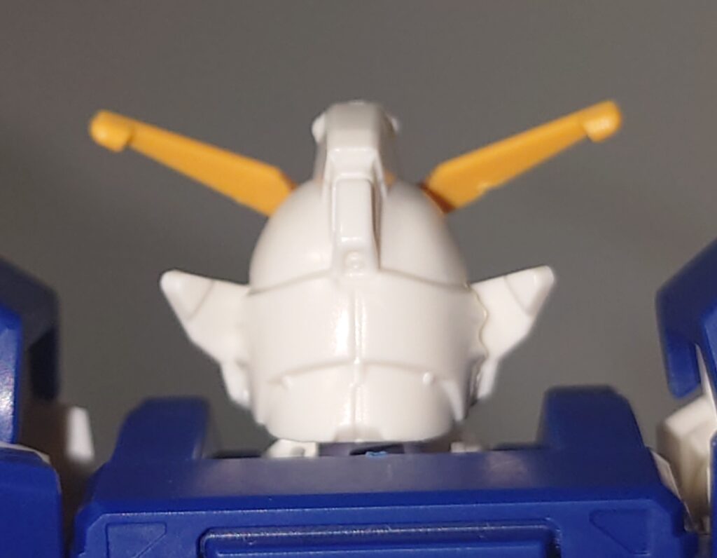 頭部。日本の兜を参考にデザインされた独特の形状を忠実に再現されています。額のセンサーのみ色分けされていないのが残念