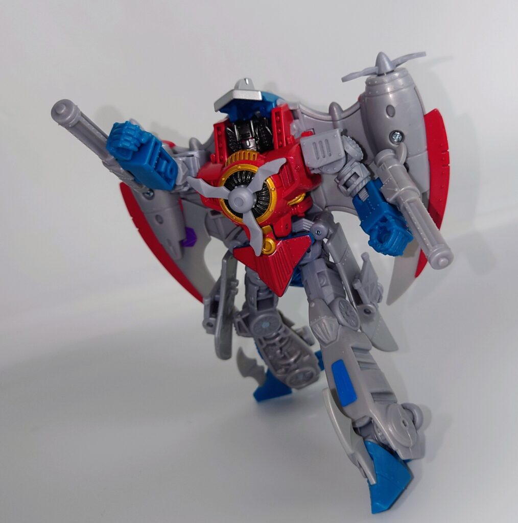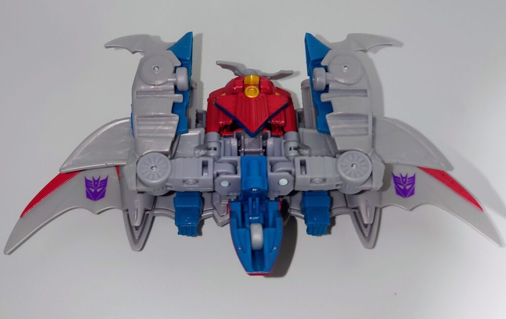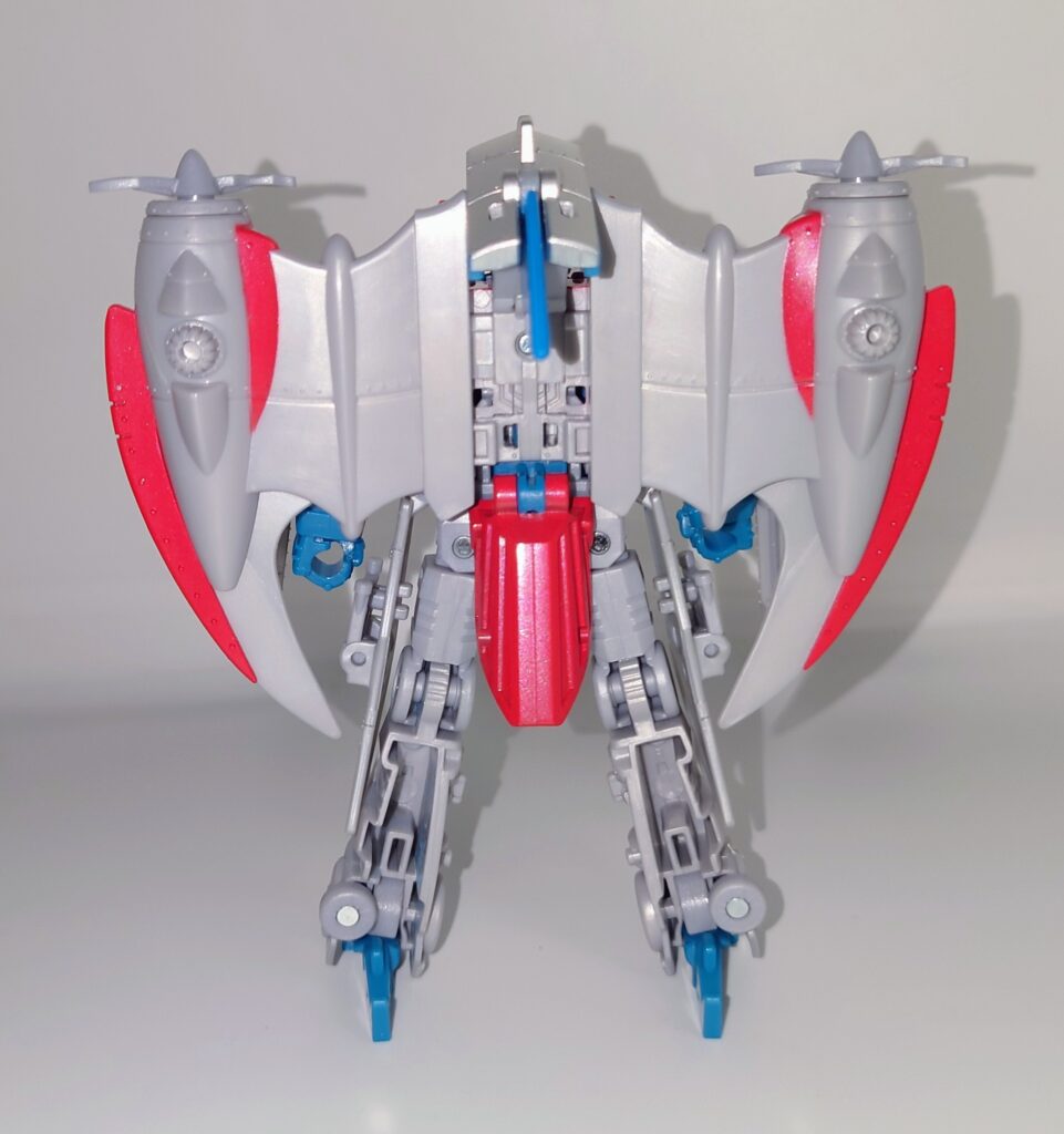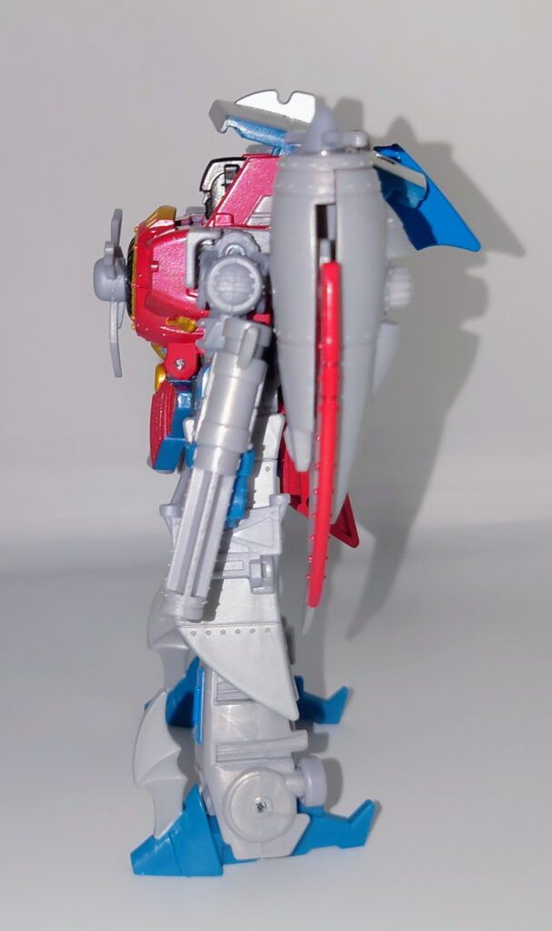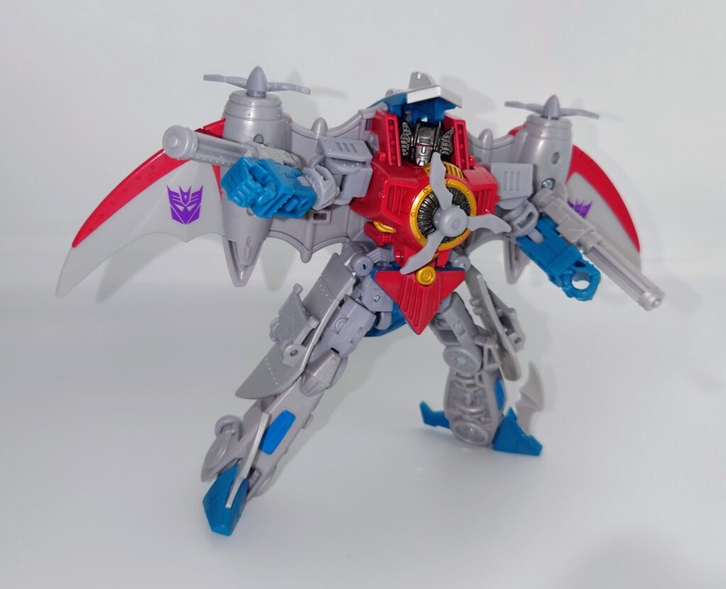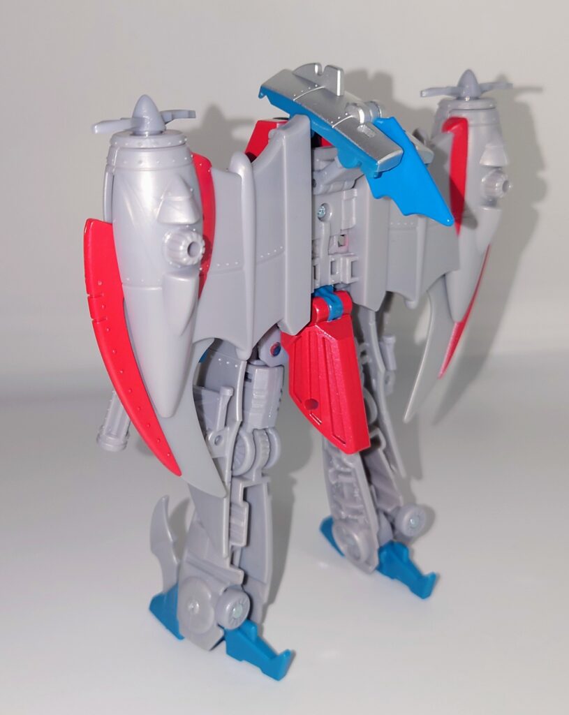 スタースクリームが若干力強く鍛え直したような体型に。背負いものが大きくなっており自立に不安が