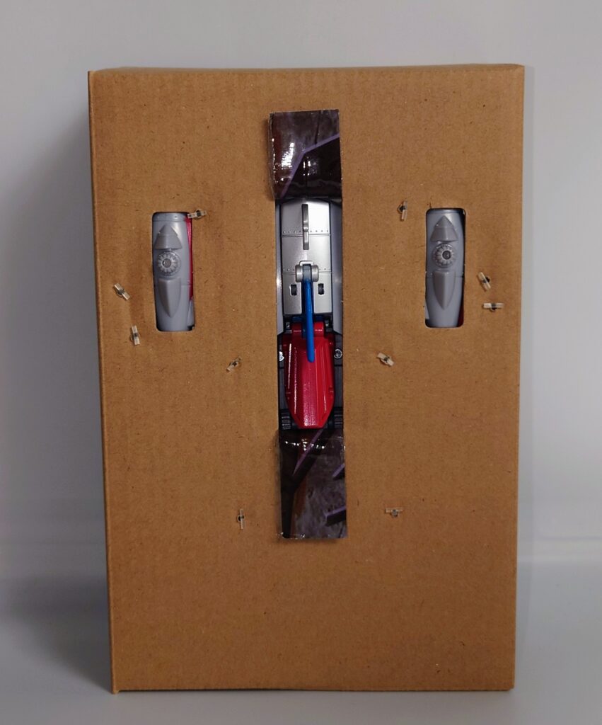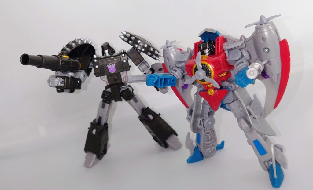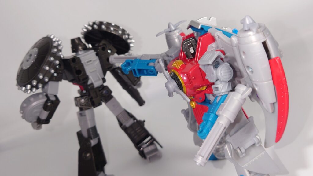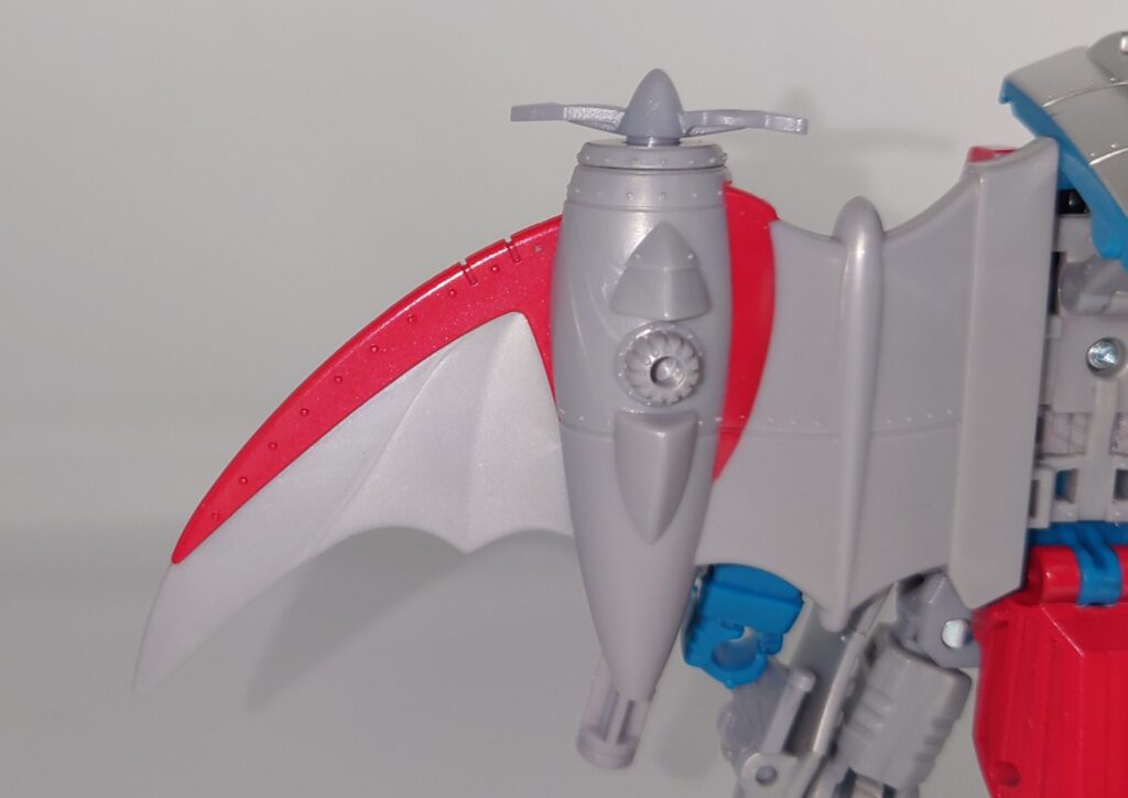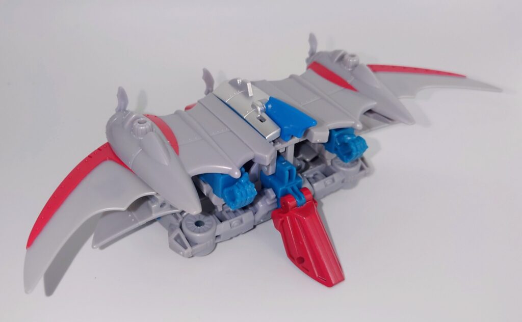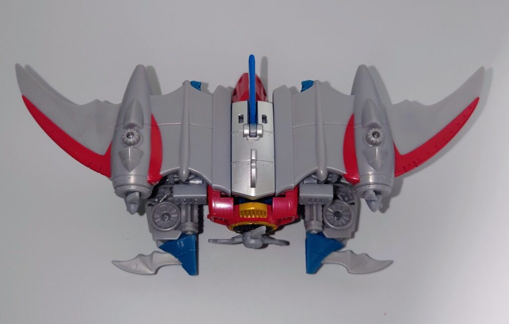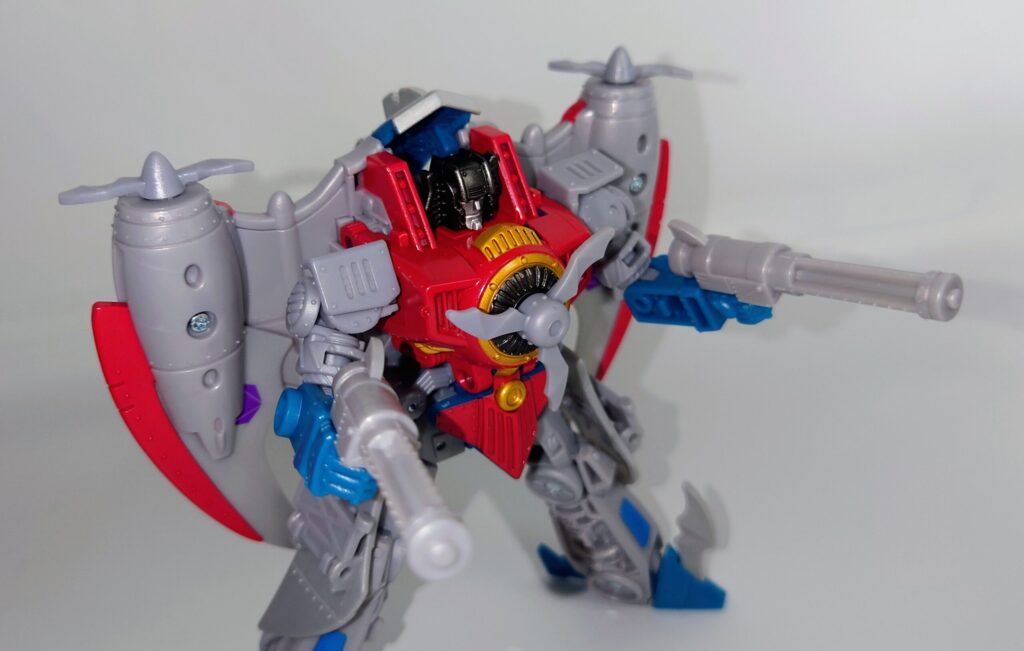 スタースクリームが若干力強く鍛え直したような体型に。背負いものが大きくなっており自立に不安が