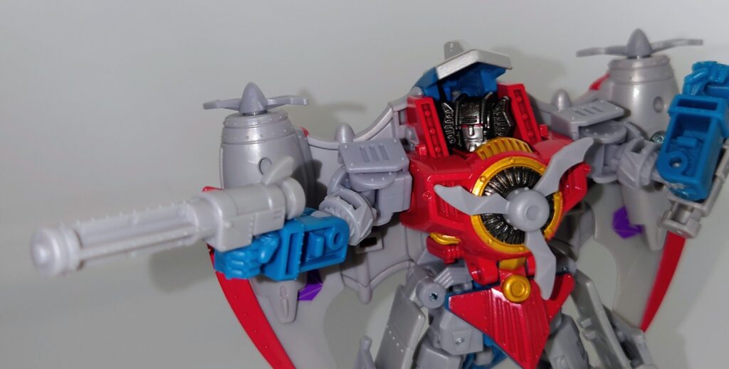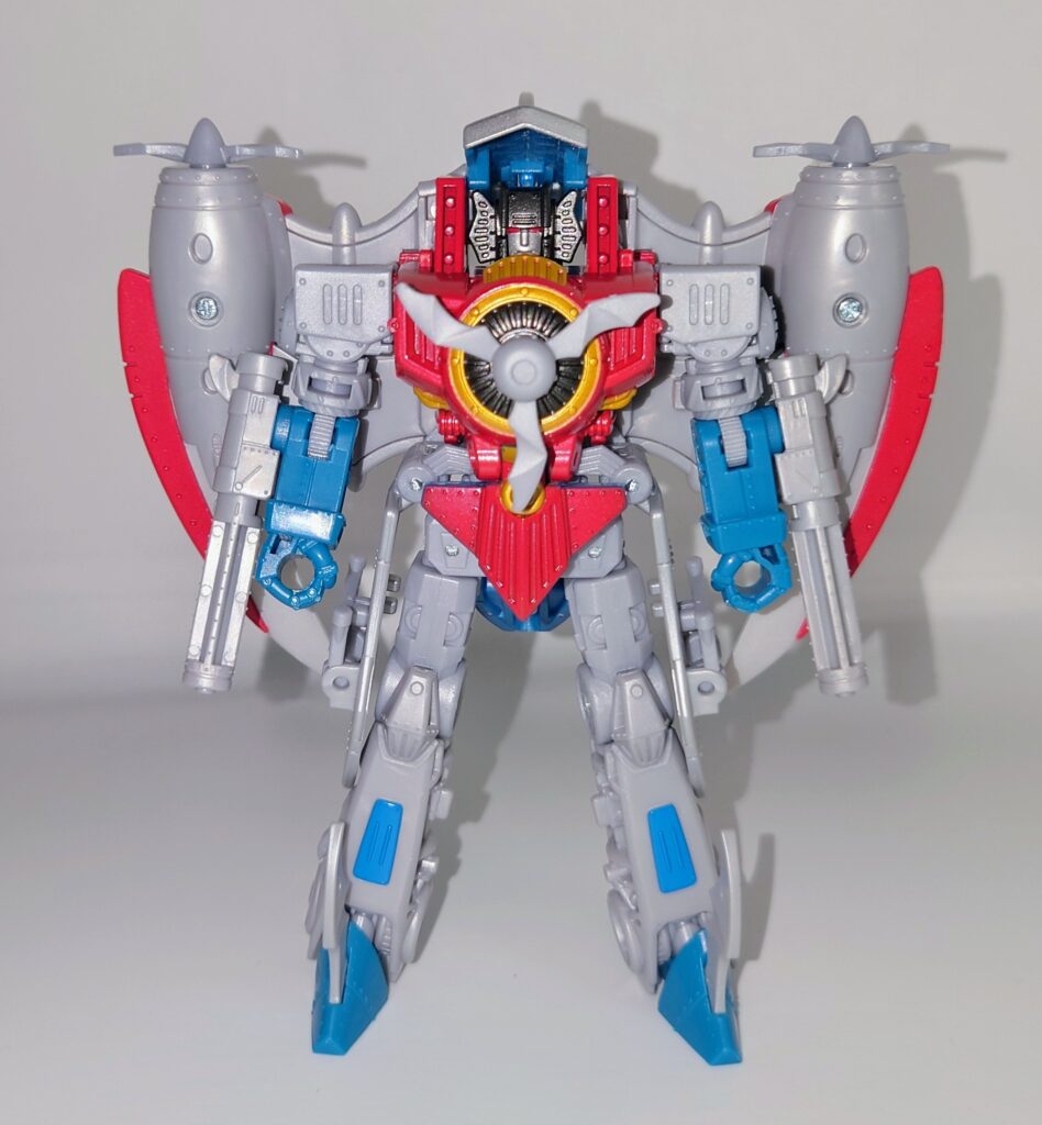 複葉機にトランスフォーム。産業革命以降の乗り物としてはかなり古い乗り物ですがそれだけジェット機型のトランスフォーマーに見慣れていたということですね。ワイバリオンより古いモチーフとは…