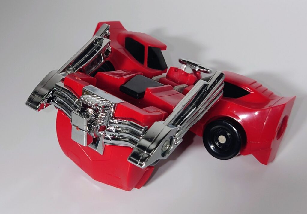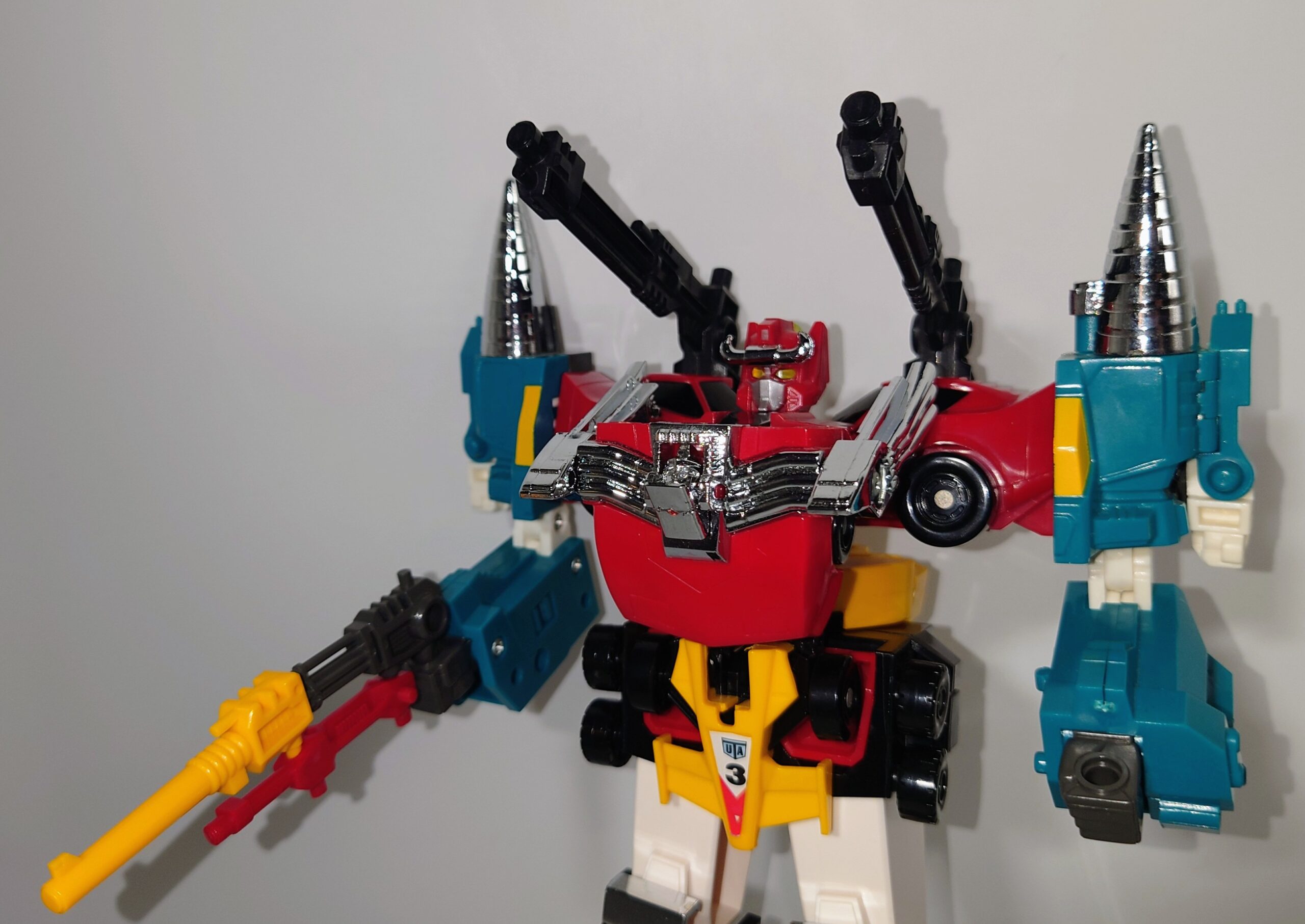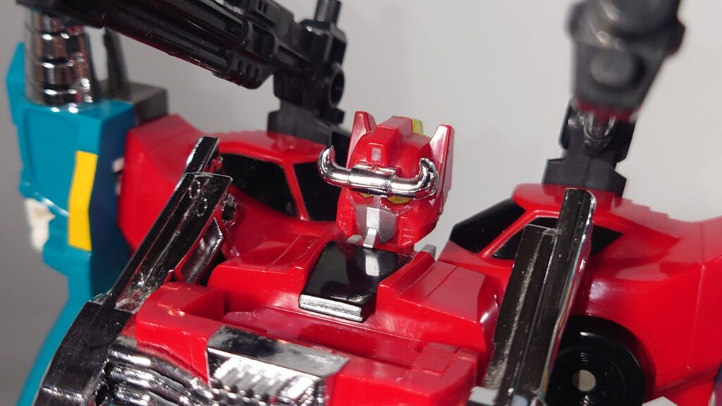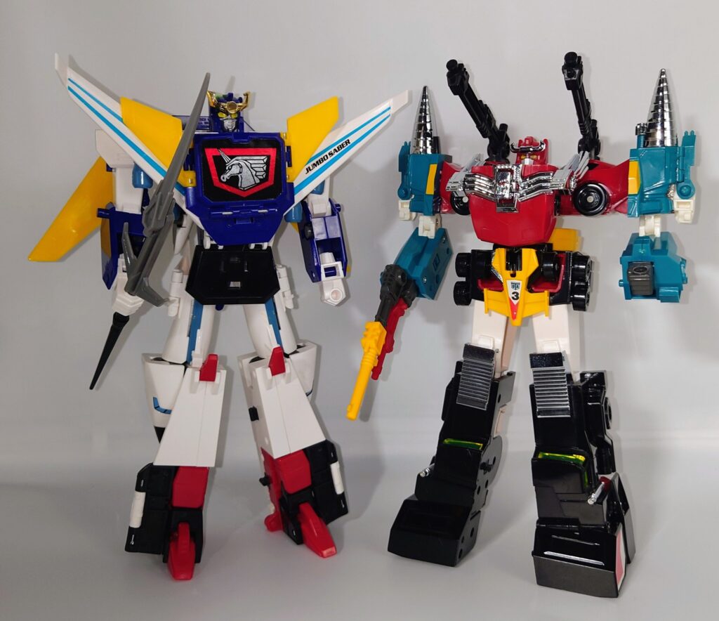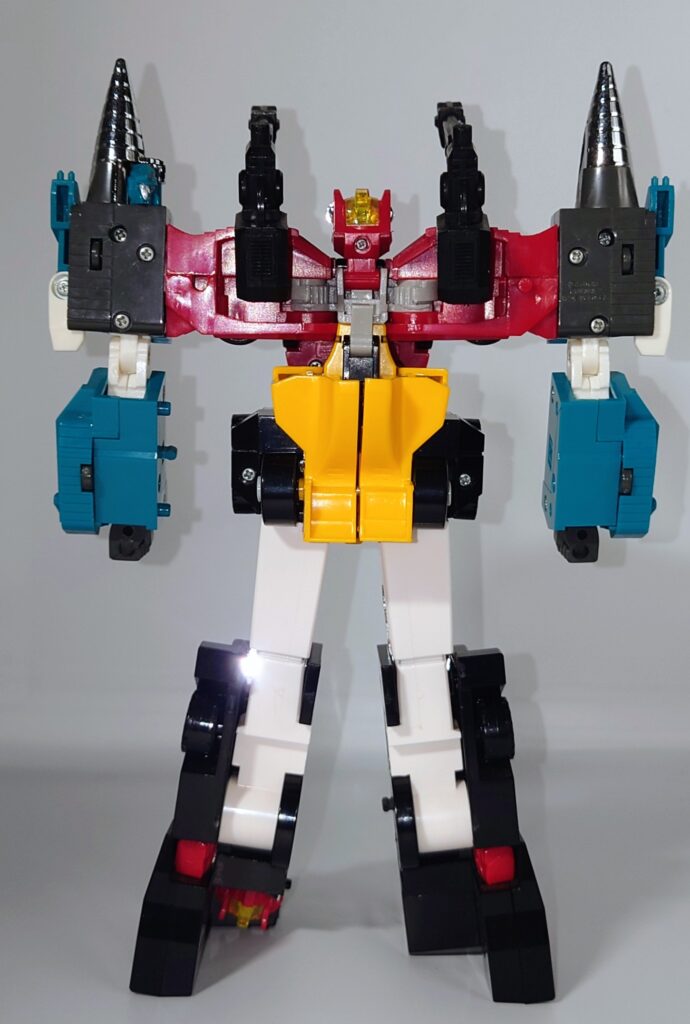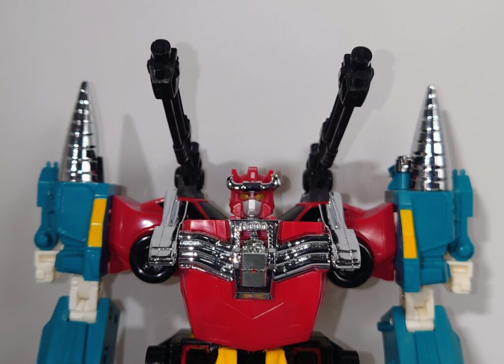 THE合体が発表されましたがオリジナルトイも素晴らしい完成度です。車両合体系のロボはカッコいいのが多いのですがここまでスタイルがよいのもあまりないと思われ35年ほど前のタカラの技術に驚愕するばかりです