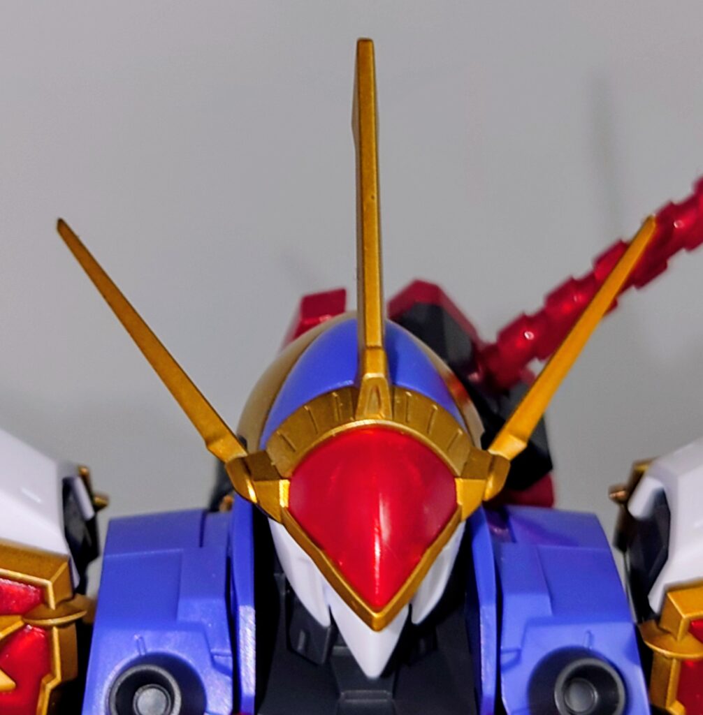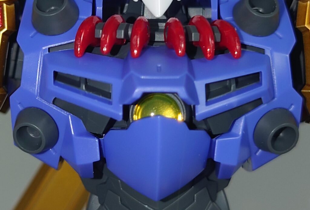 頭部。本体部分の色分けは完璧で目と額のセンサーをシールで補完します