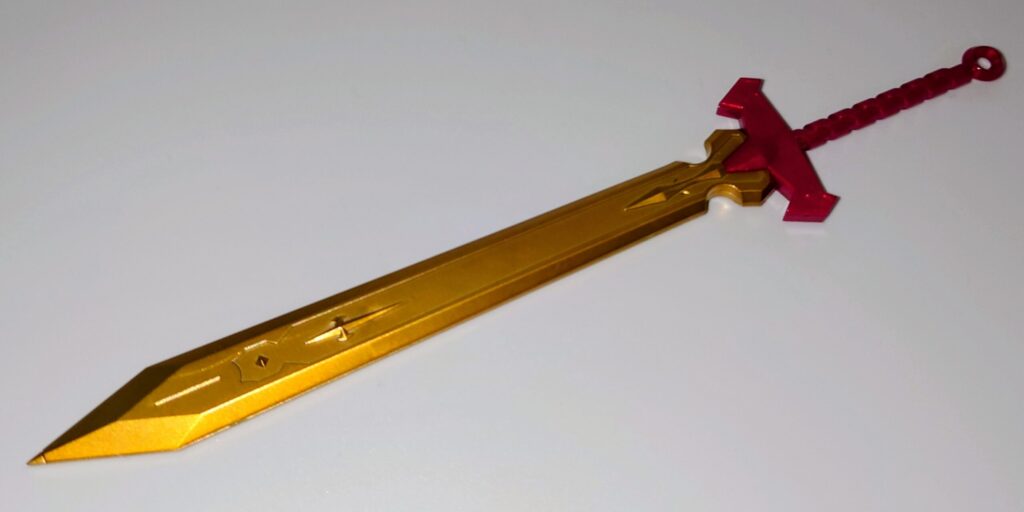 登龍剣が付属。刀身はゴールドのエクストラフィニッシュ加工が施されており綺麗
