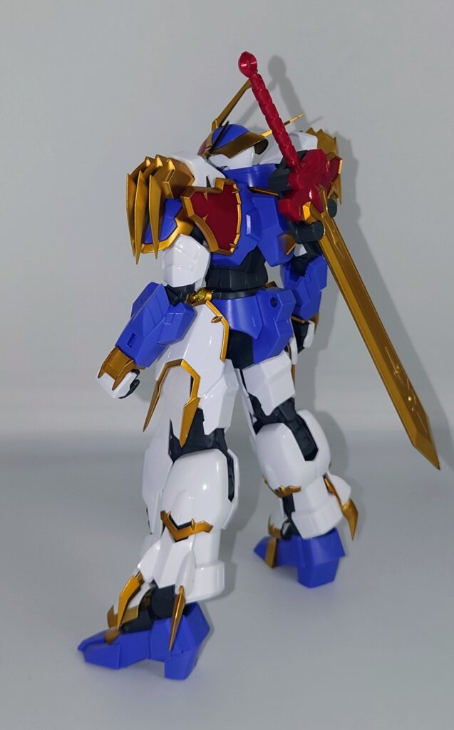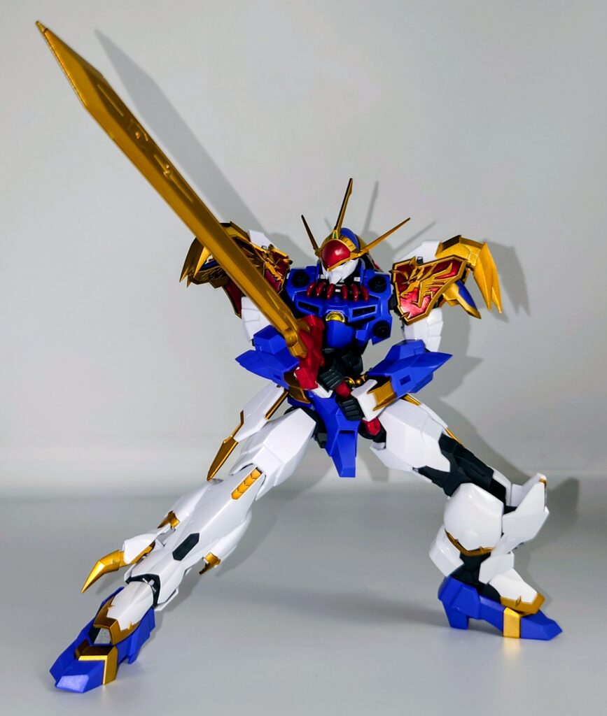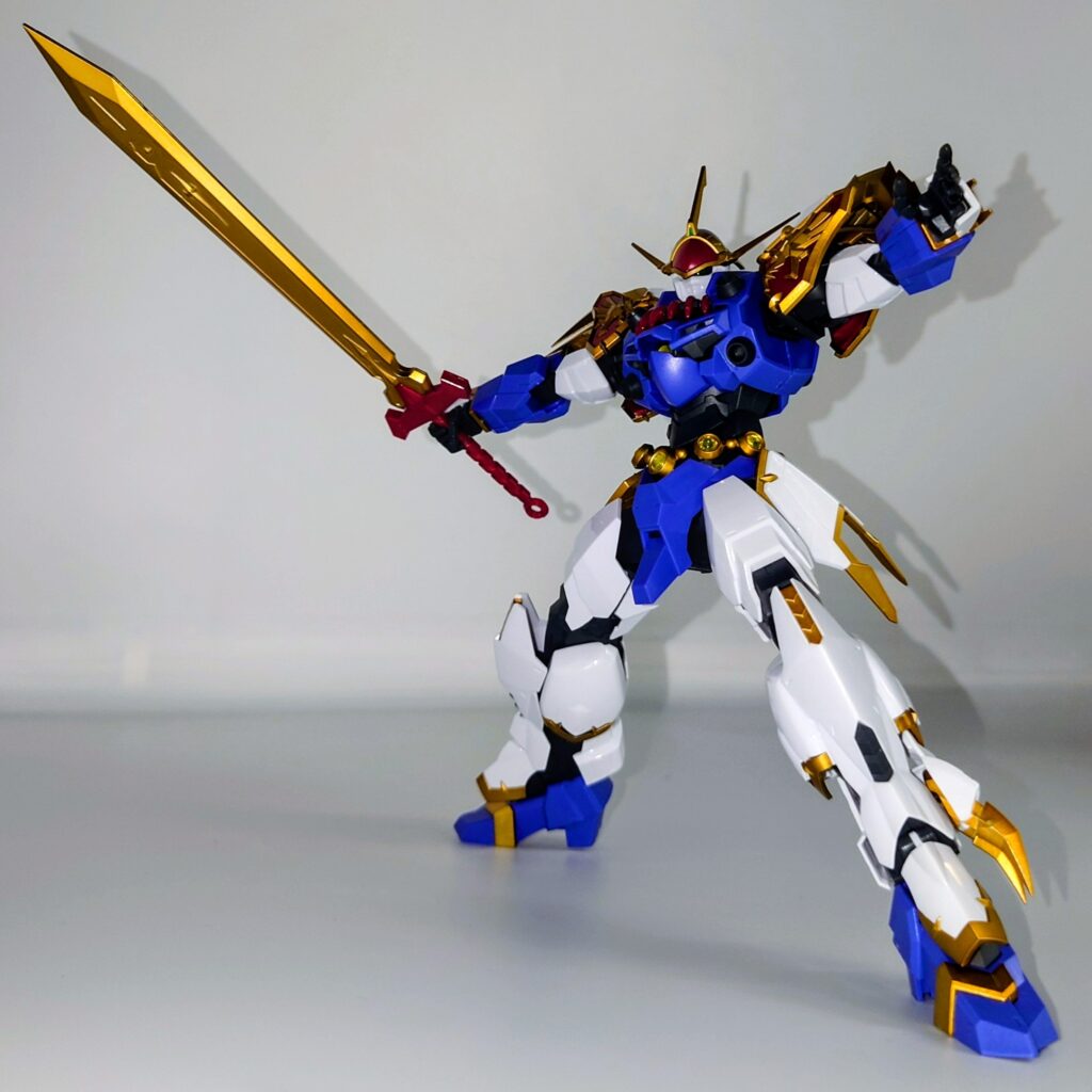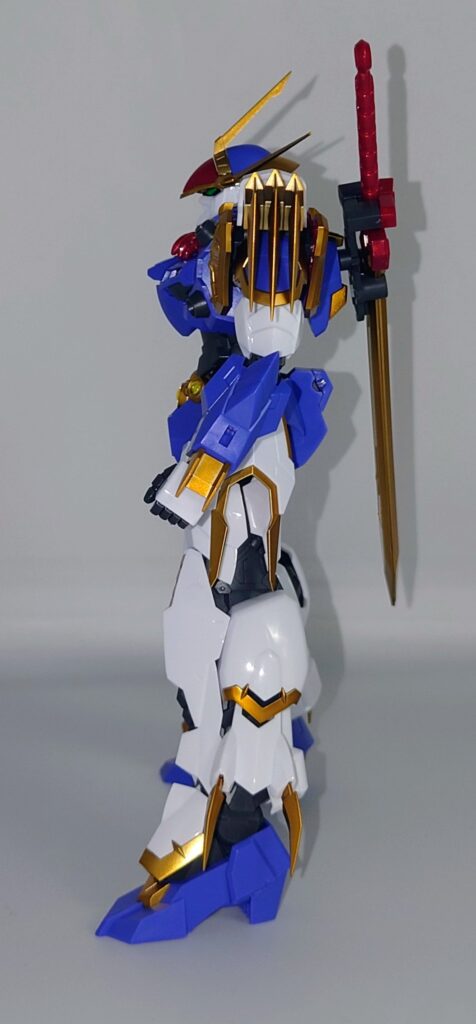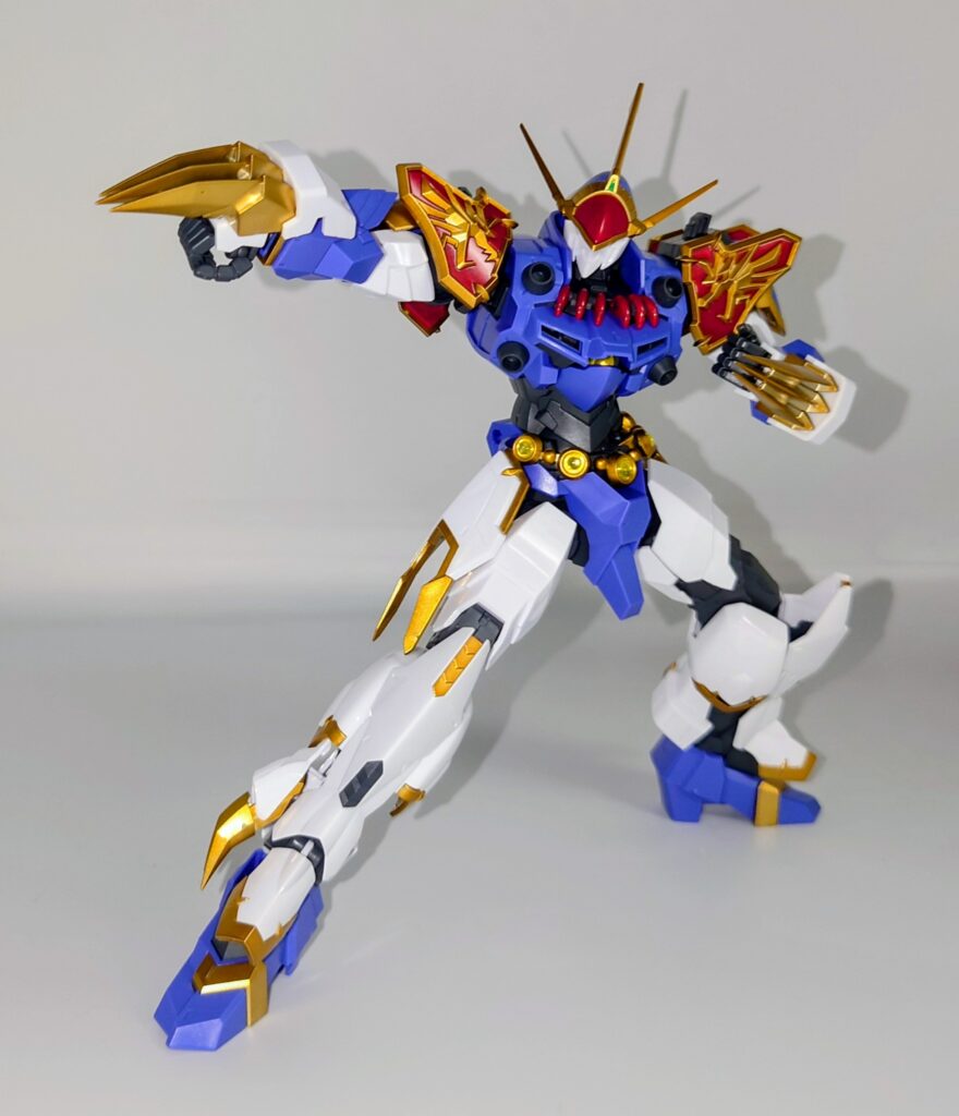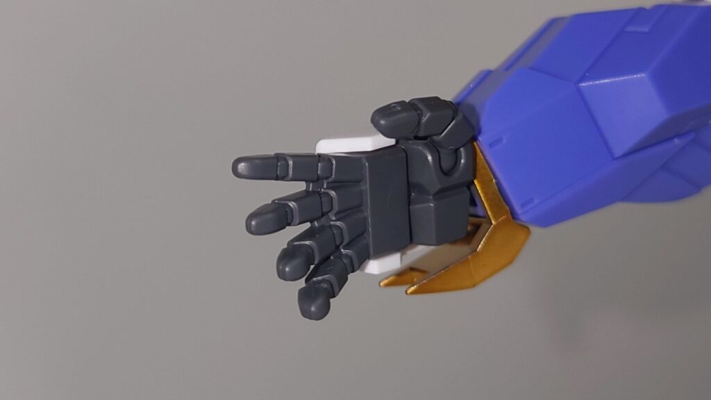 結構動きます。だいたいHGガンプラの標準的な可動範囲は保証されており、可動を損なうデザインでもないため頭部の角に気をつけつつポージングが可能