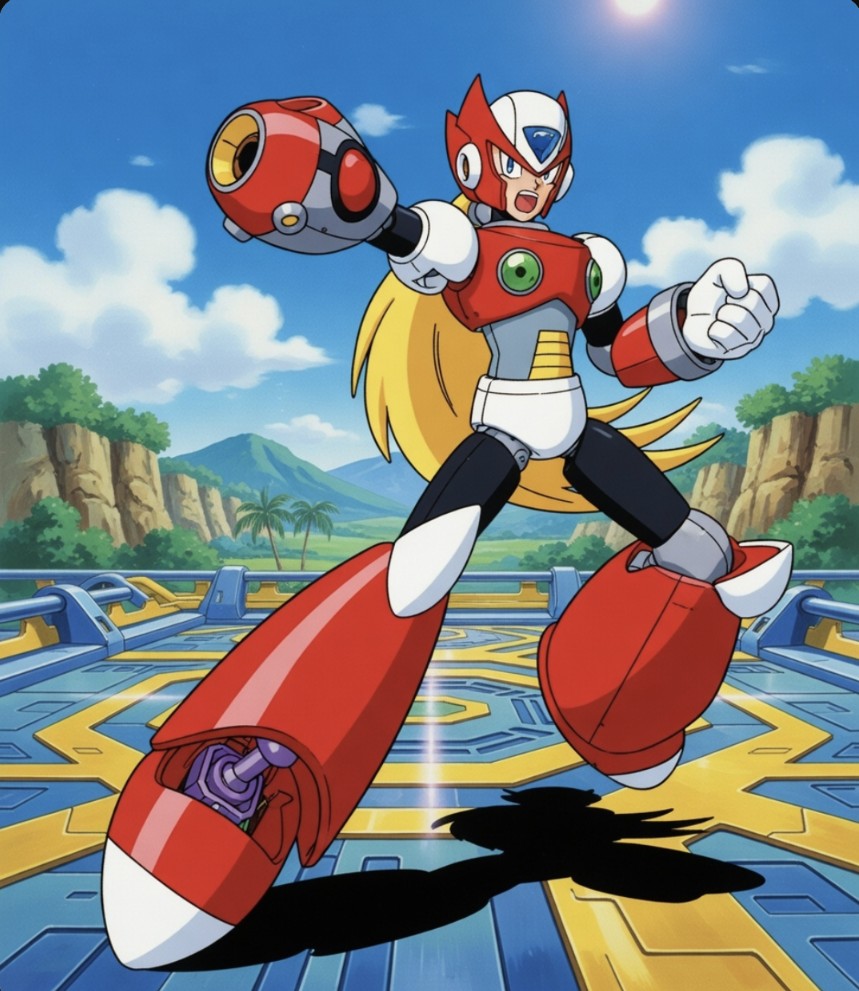 バスターを構えるゼロのイラスト。顔立ちもシリーズ初期ゆえか幼く見えますね