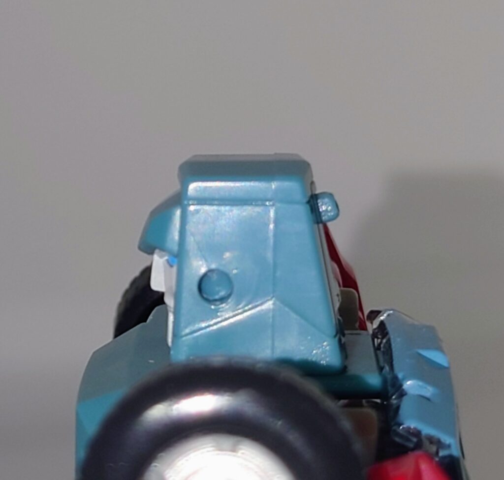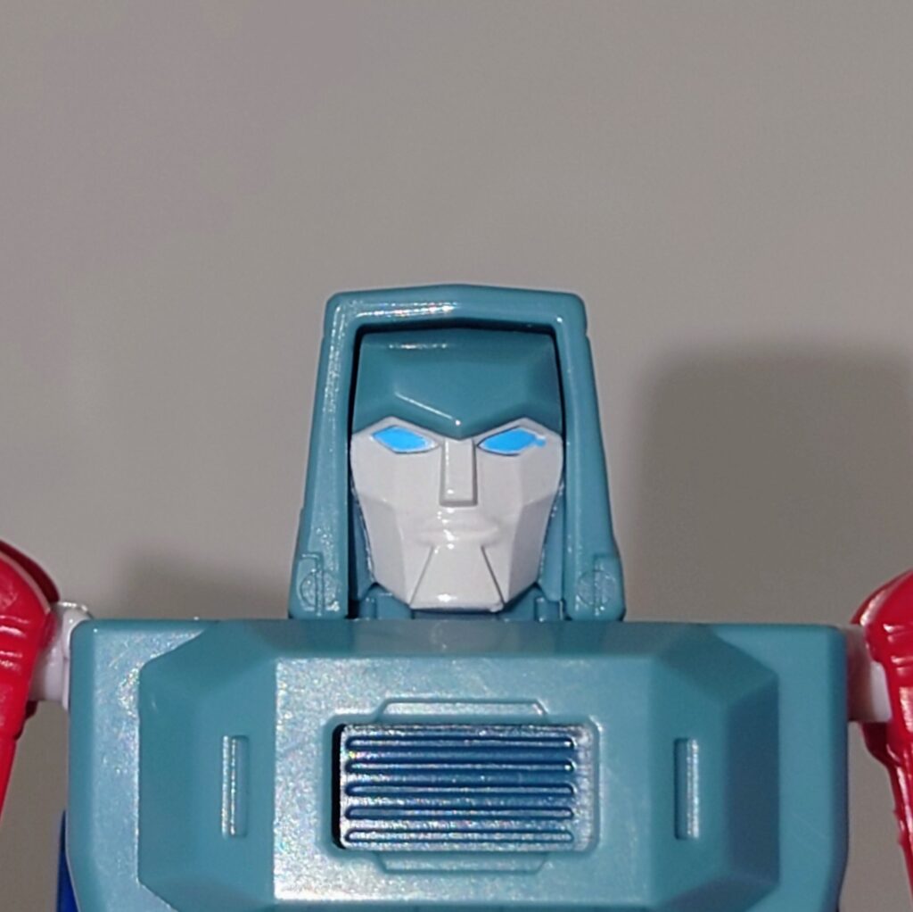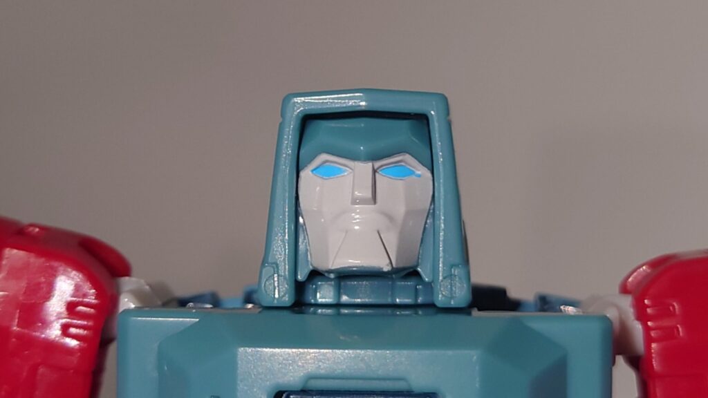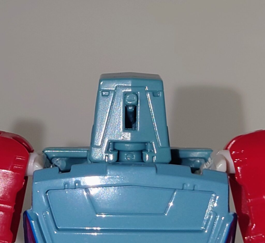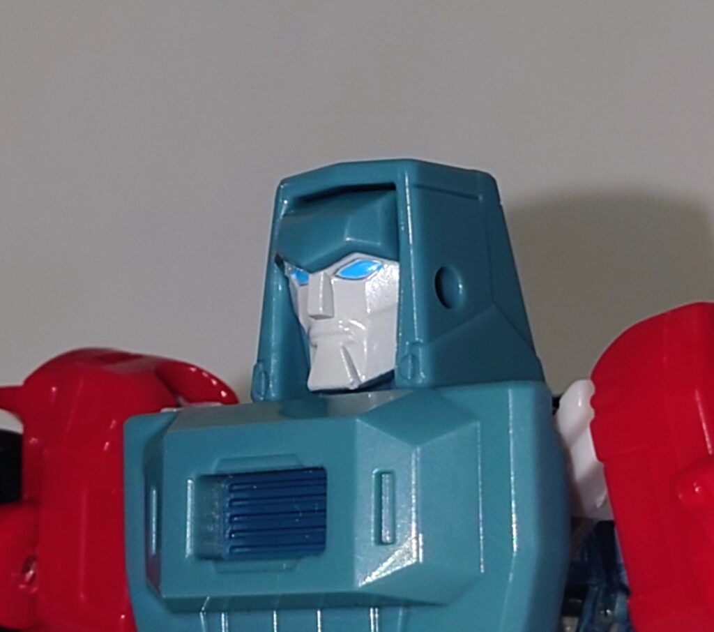頭部。ここにもギミックが仕込まれています。G1トイ版ではゴーグルタイプの顔でした
