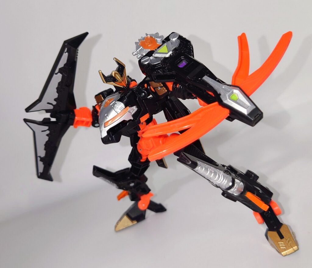 連動機構がなくなっているのは残念ですが当時品のギミックをなるべく再現しようとしている点はかなり好印象。ベクタープライムやサイドバーンのようにビークルが全く似てない別物でなくディティールまで細かく踏襲するなど気合の入った完成度で殆どの人が納得できるリメイクだと思います