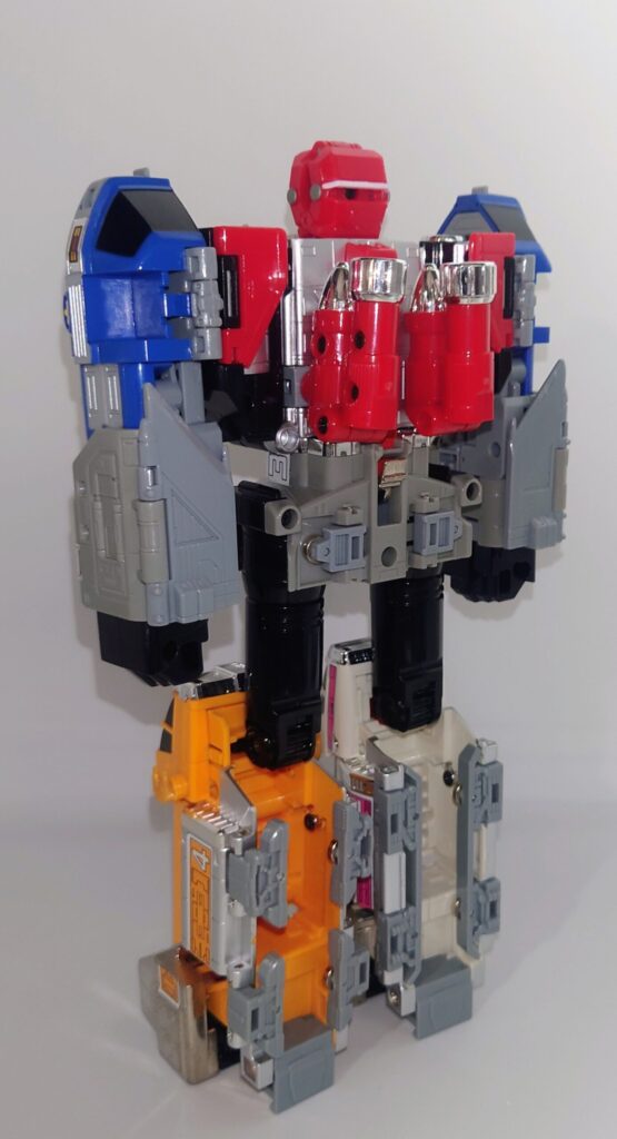 直立させて各部を変形させると人型のビクトリーマーズになります。まとまりが良すぎていい意味で合体ロボには見えませんが、これゆえに地味に見えてしまうのかも…