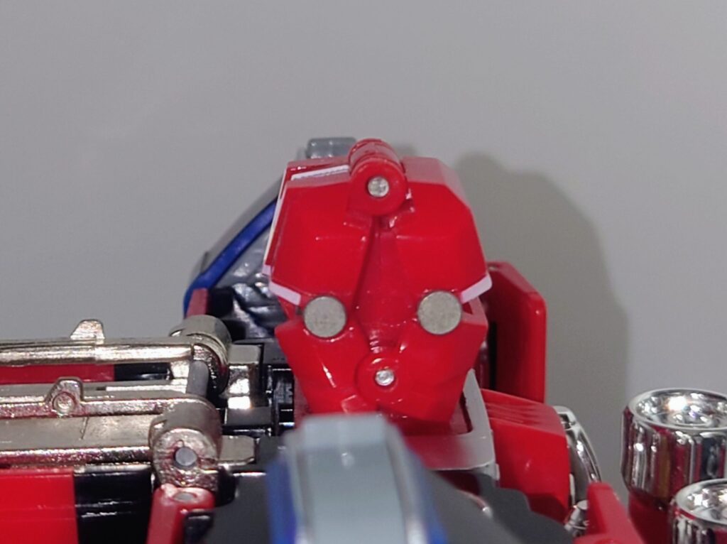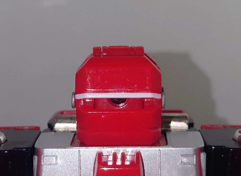 頭部。パンタグラフ状の物体が展開して顔になるプロセスは劇中でも強調されていましたが手で触れて再現するとまたなんとも言えない感慨が浮かびます。SMPでも同じ機構ですがサイズ的に扱いづらく、旧ミニプラ版ではオミットされていました