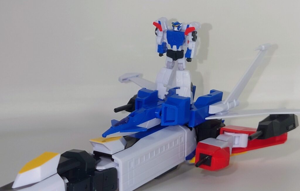 開発ブログで紹介していましたがダ・ガーンを乗せています…が、THE合体版みたいに固定するジョイントなどはなし。ただ乗せただけですがアースファイター上部に溝掘れば固定できそうな気はしますが…