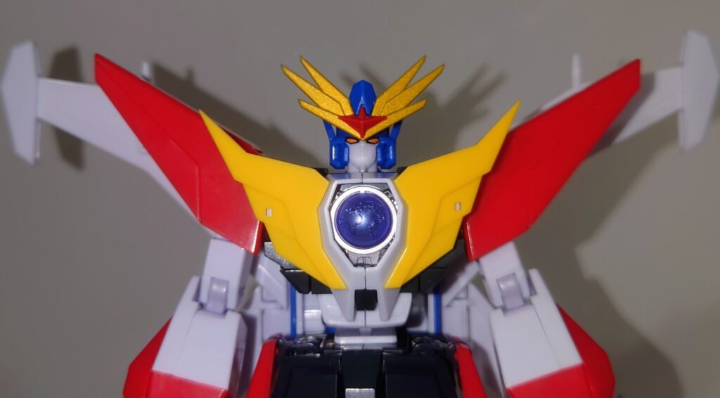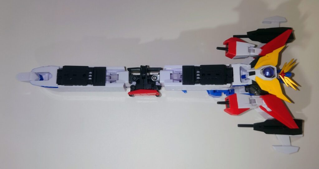 ダ・ガーンの合体方式が変更され上半身と下半身で包み込む感じではなくアースファイター部分に収納する形に収まりました。これはこれで可動を意識したアレンジでしょうがウエストがモデルのように細くなりました