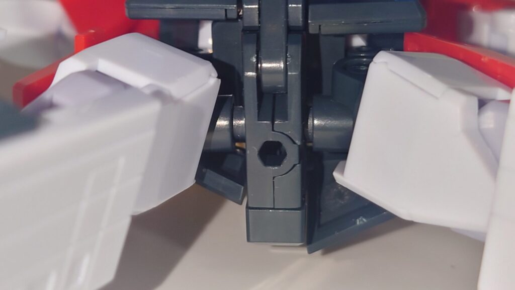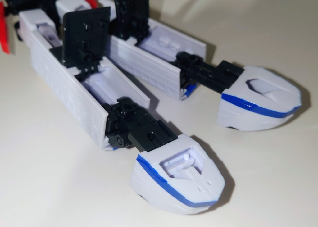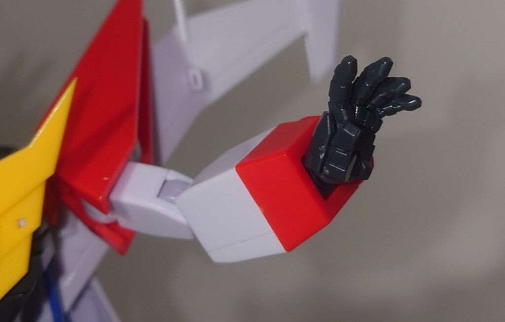 足首部分は伸縮機構あり。これを採用できるのは高い金型精度と長年の技術的蓄積を兼ね備えたバンダイくらいのものですがかなり固く、ガ・オーンとの合体も考えると迂闊にシリコンスプレーを使うのも躊躇われるところ