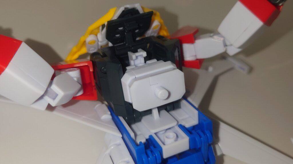 可動範囲は今までのSMP勇者系と比較しても遜色ない程度には動きますが、ダ・ガーンは合体機構自体に無理がないため腰ブロックを可動用にすればかなりの自由度があります
