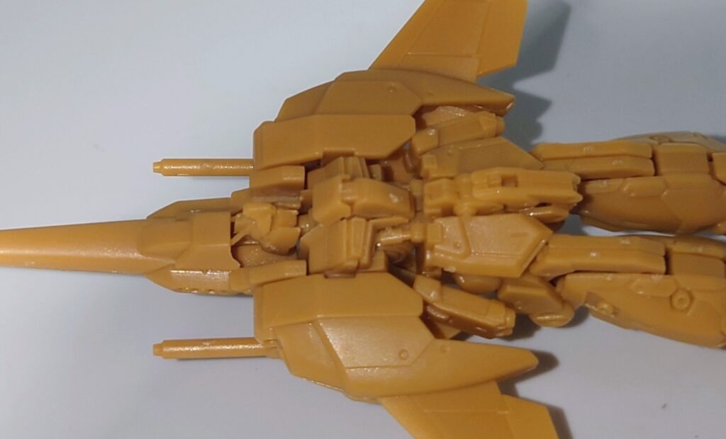 リ・ガズィにバッグウェポンシステムを組み込んだ巡航形態。腕部は完全に余剰で脚部フレームは組み換えですがモールドは精密。ビームキャノンの銃口も開口されています