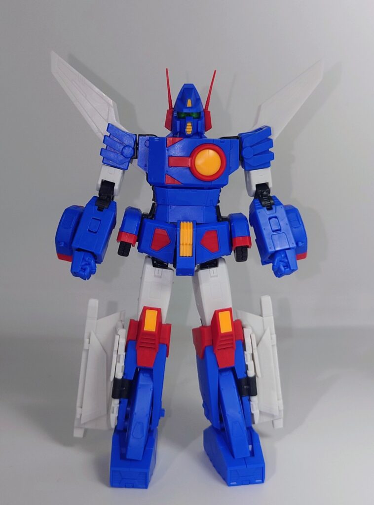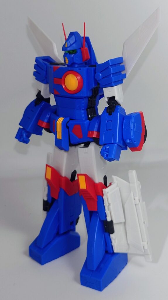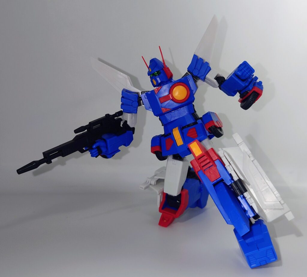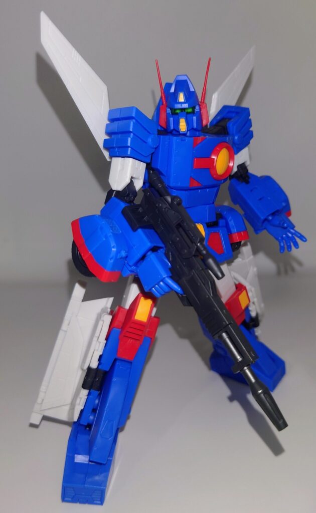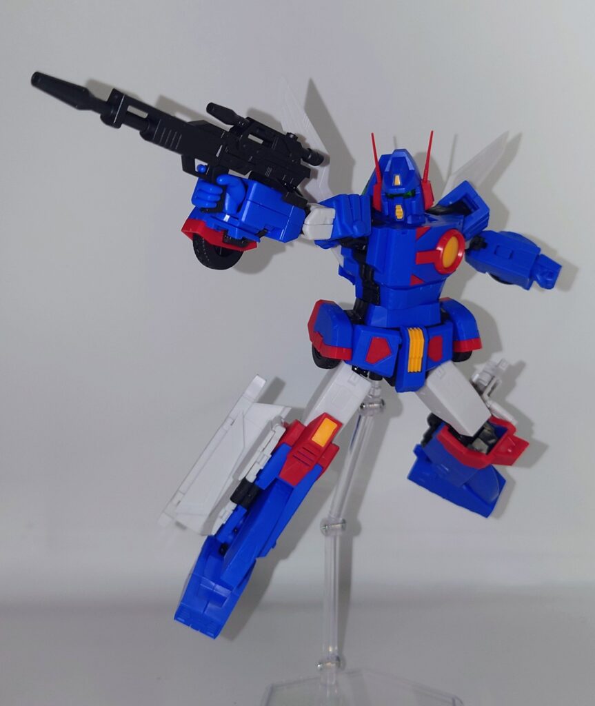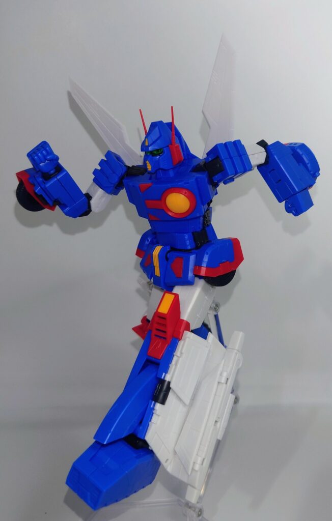 変形合体を内蔵しているとは思えない綺麗なスタイルが魅力です。これで差し替え無しなんですよこのプラモデル…ちなみにシールレスでございます