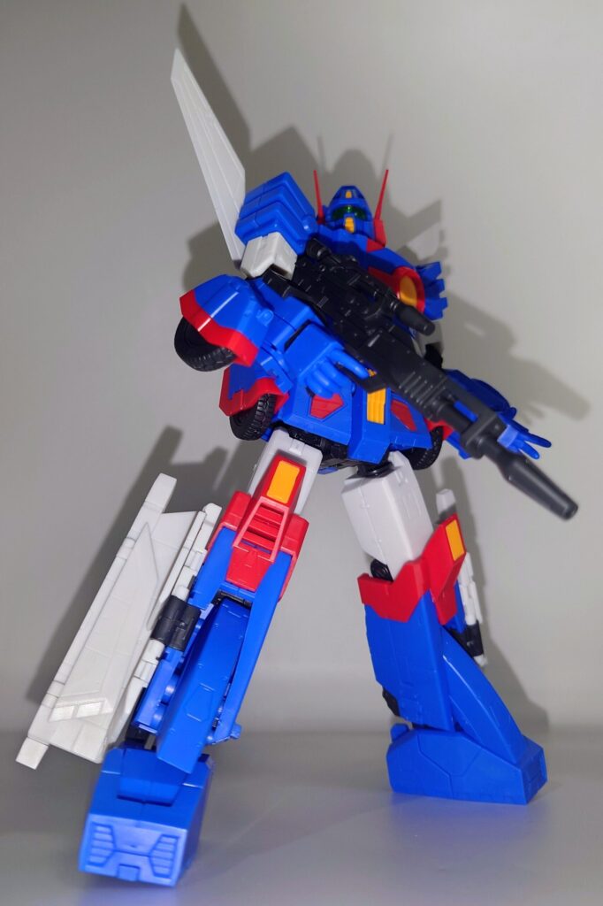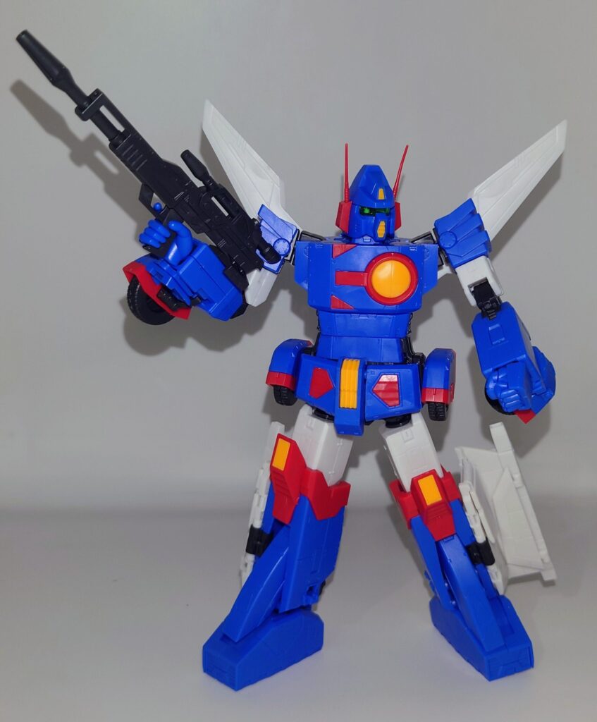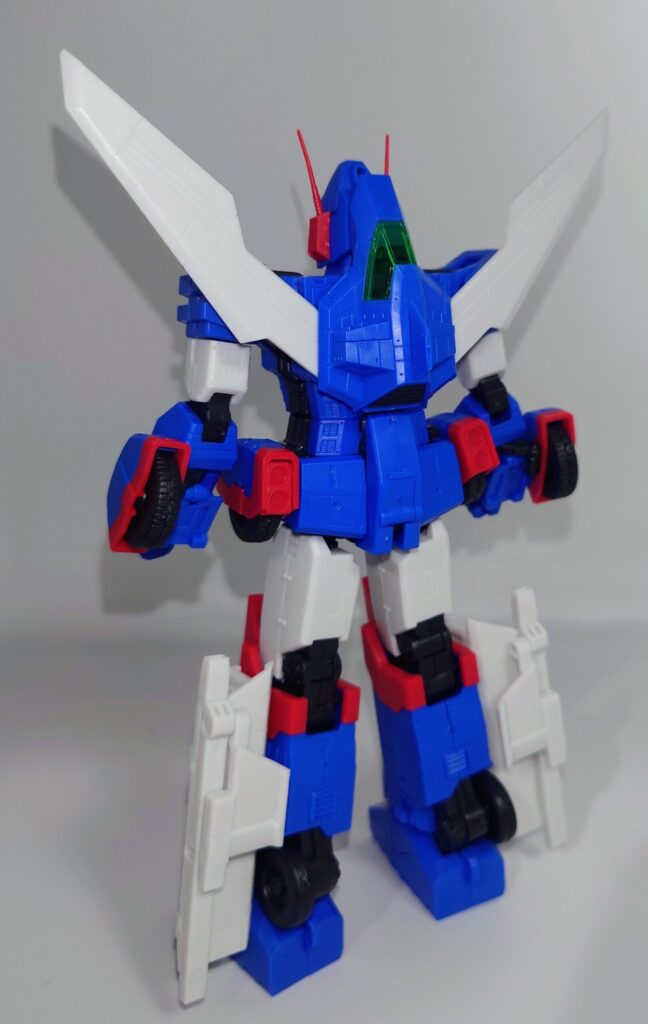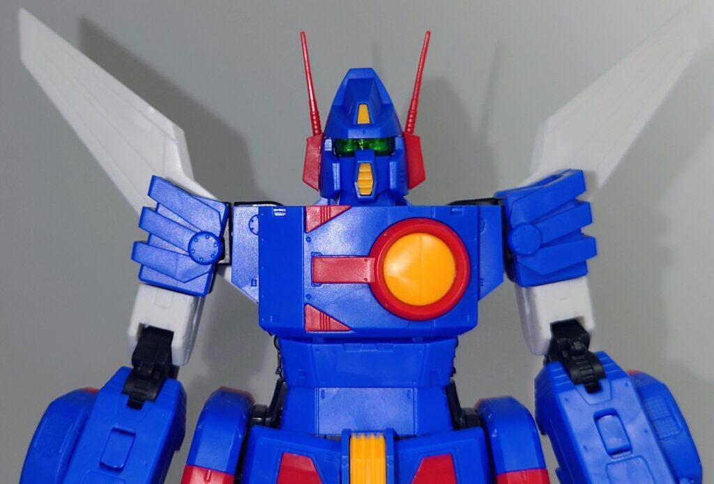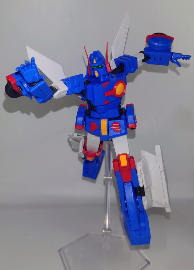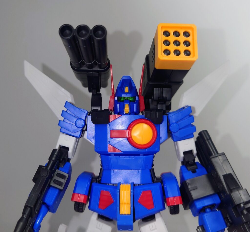 変形合体を内蔵しているとは思えない綺麗なスタイルが魅力です。これで差し替え無しなんですよこのプラモデル…ちなみにシールレスでございます