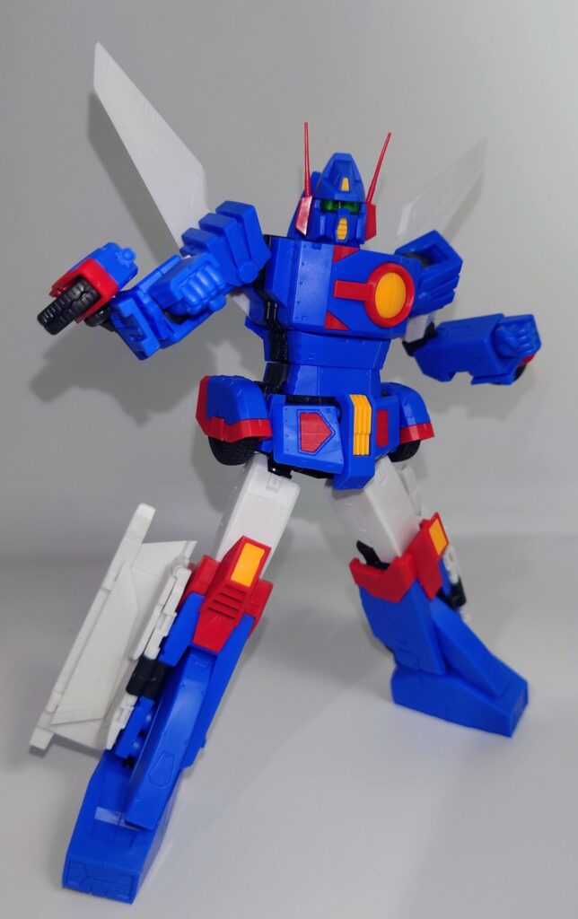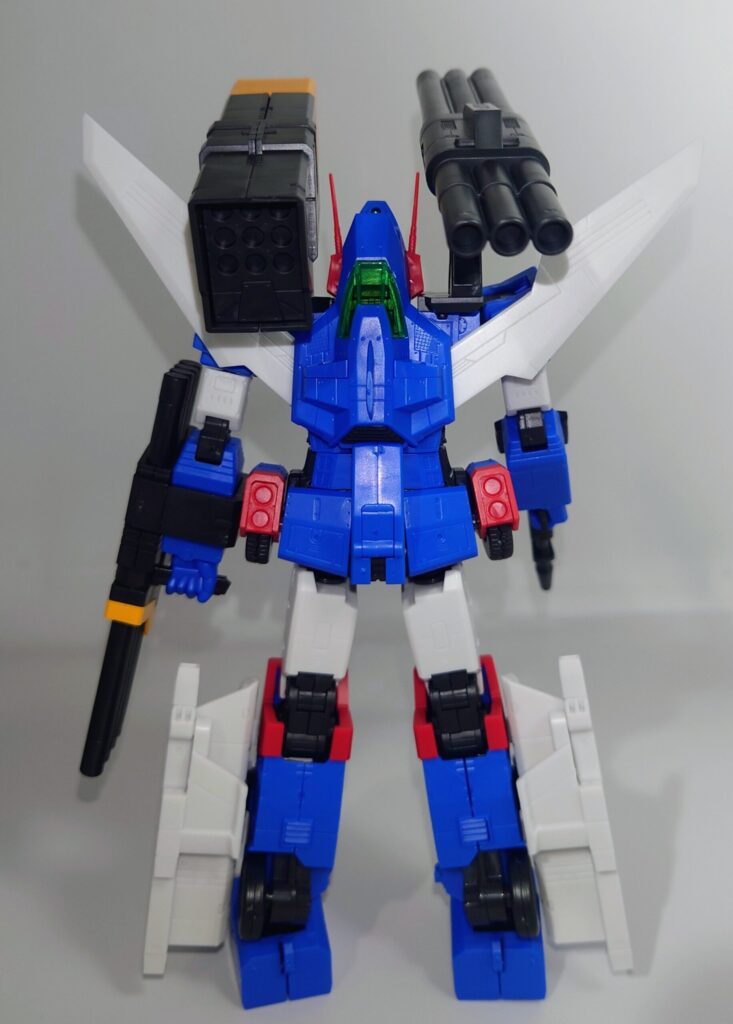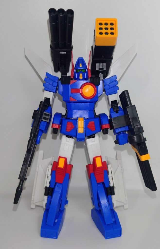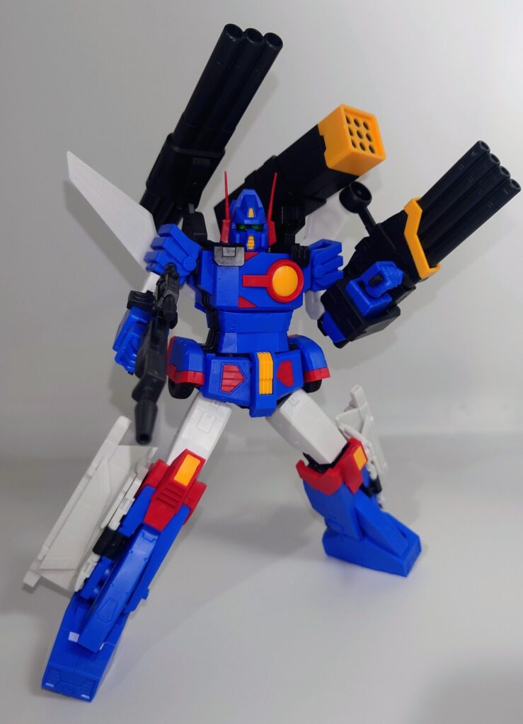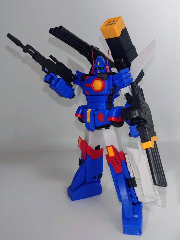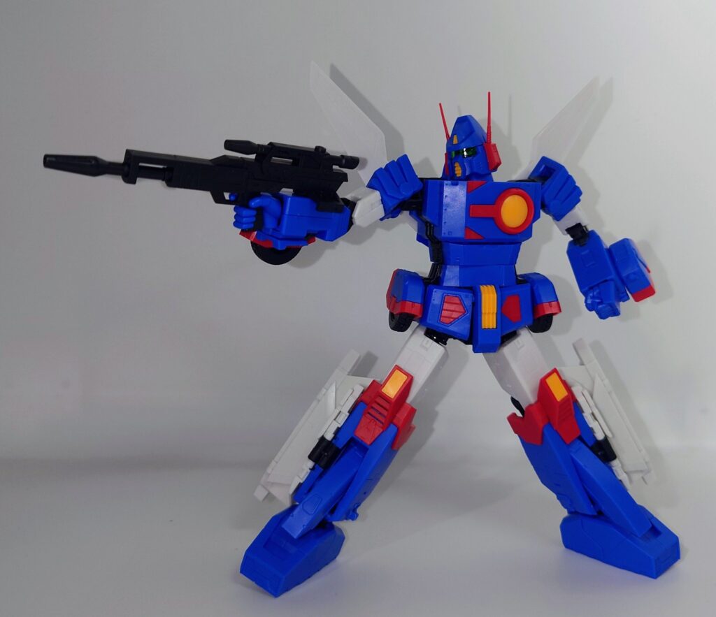 変形合体を内蔵しているとは思えない綺麗なスタイルが魅力です。これで差し替え無しなんですよこのプラモデル…ちなみにシールレスでございます
