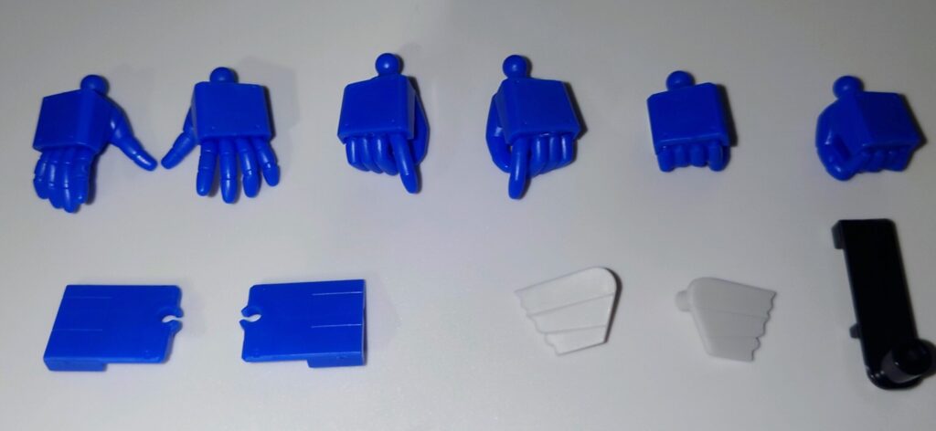 袖口のパーツはタイヤがないフラットな形状のものも付属。フル装備時はこちらを使用します