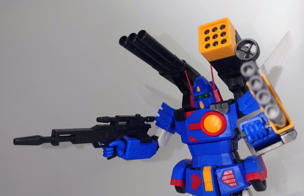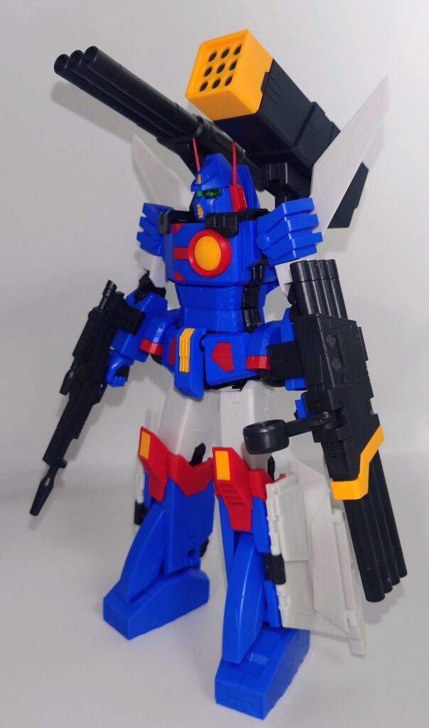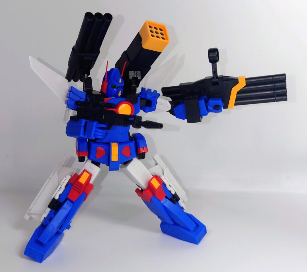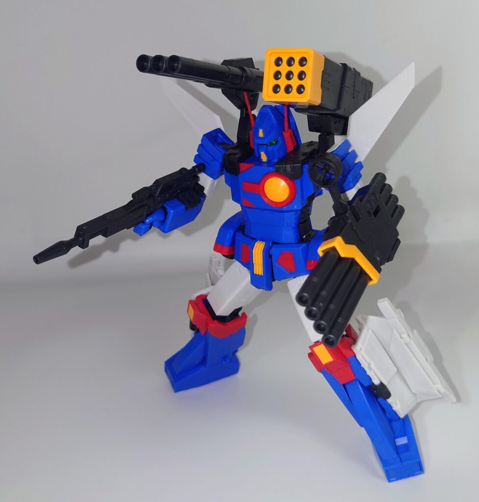 4連ハンドキャノン、3連バズーカ、9連装ロケット弾ポッドを装備した形態。武装だけをバランスよく取り付けた形態のため本体への負担は少なめ