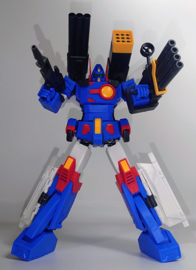 差し替え無しの変形合体可能ですがかなり動きます。流石に肩の引き出し機構はありませんが腰可動もするなど侮れません