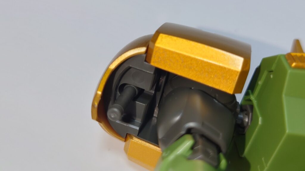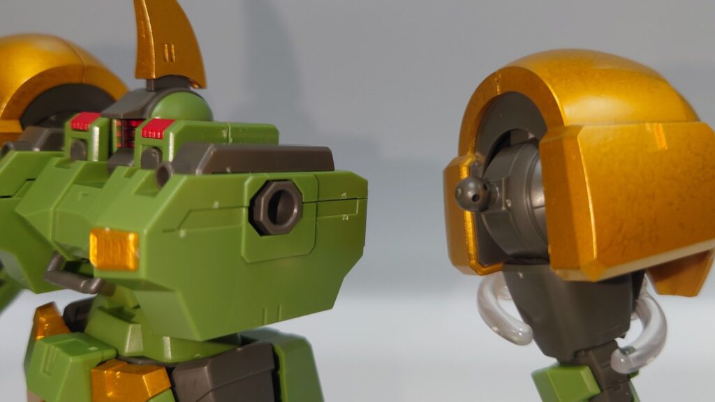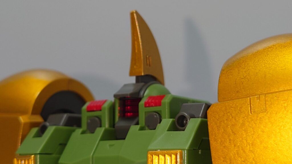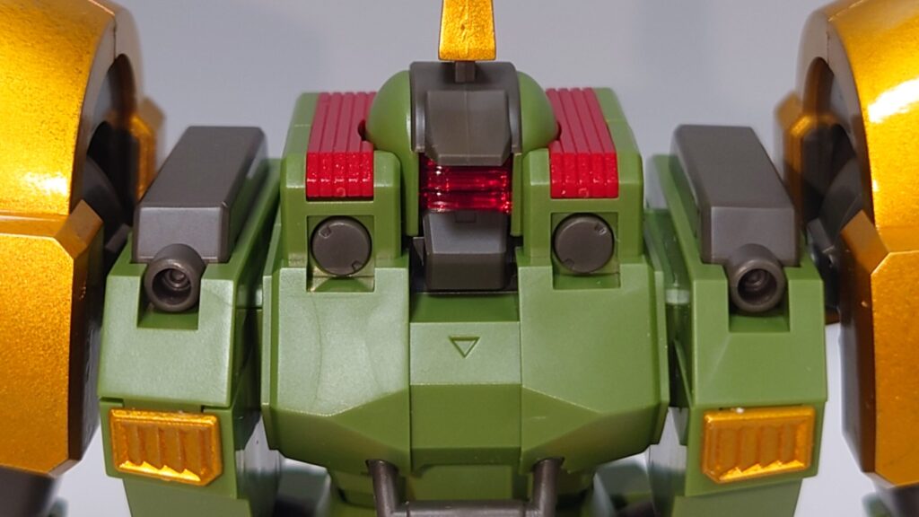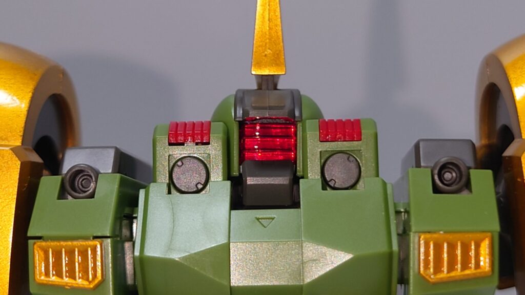 カメラアイの奥にはメタリックシールを張っているため光を反射します。ちなみに頭部のトサカは武器らしいです