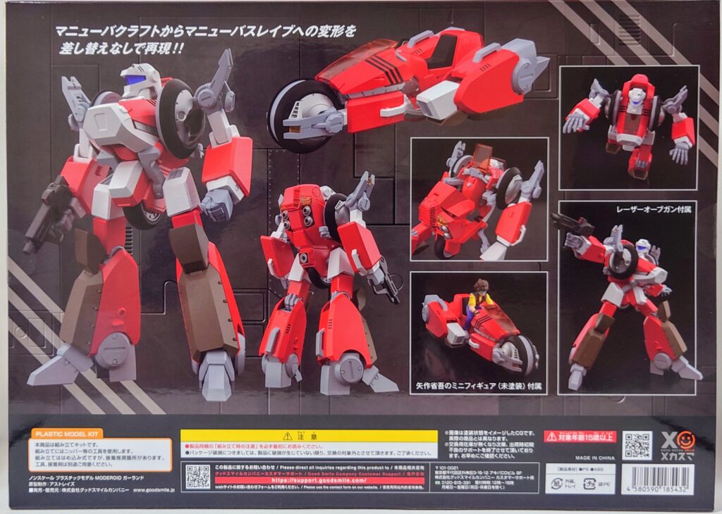 イラストはレーザーガンを撃ちハーガンを粉砕するガーランドをバックに疾走する省吾という構図で、人型とバイク形態の2つが描かれています