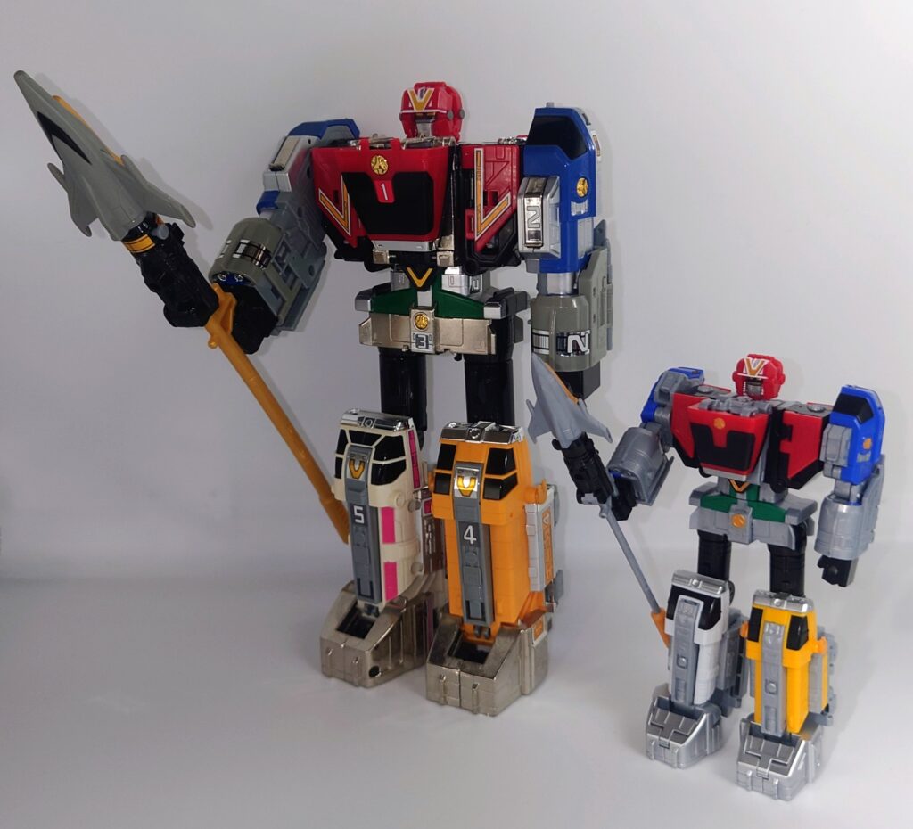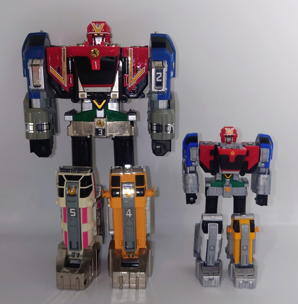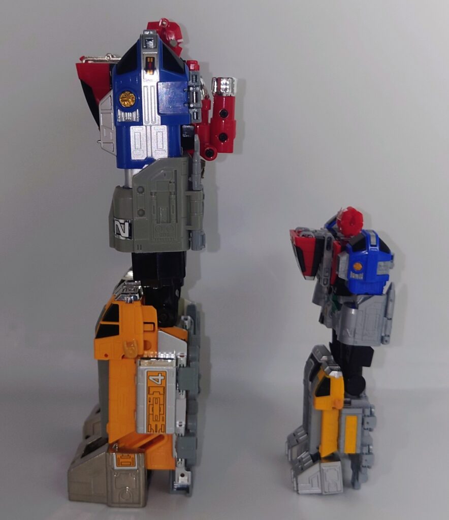 合体を想定しているからかビクトリーロボの方がやや小さめです。並べるまで同じくらいの大きさだと思いこんでいました。