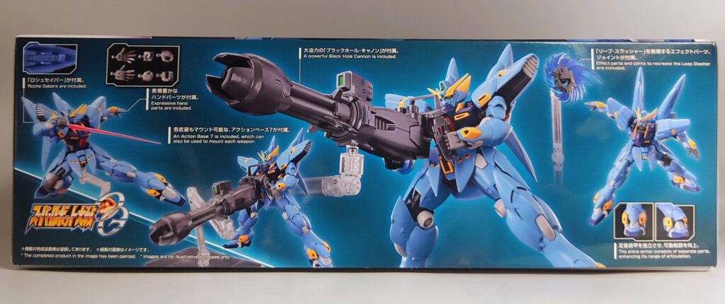 付属品は手首パーツ、ビームソード、リープスラッシャー、ブラックホールキャノン、スタンドなどが付属