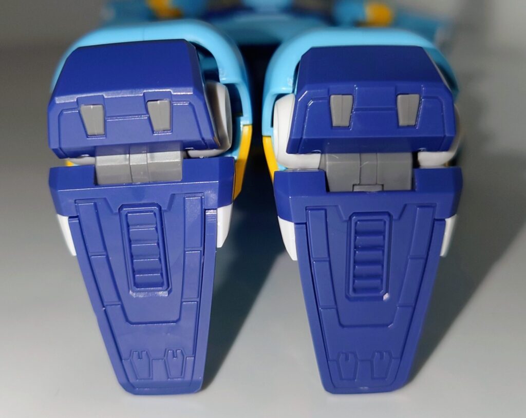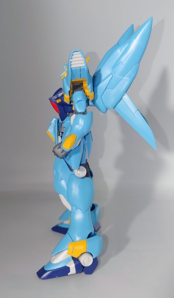 テスラ・ドライブを兼ねたウイングユニットは下部の翼がPCボールジョイント接続にて可動しますが軸可動でないため自由度は低め。マイクロミサイルの内蔵はアニメーションで描写されたのがスーパーロボット大戦Vからのギミックゆえかありませんが分割の構造からしてバリエーションが出るかも