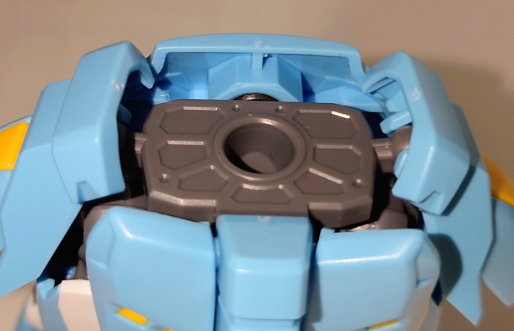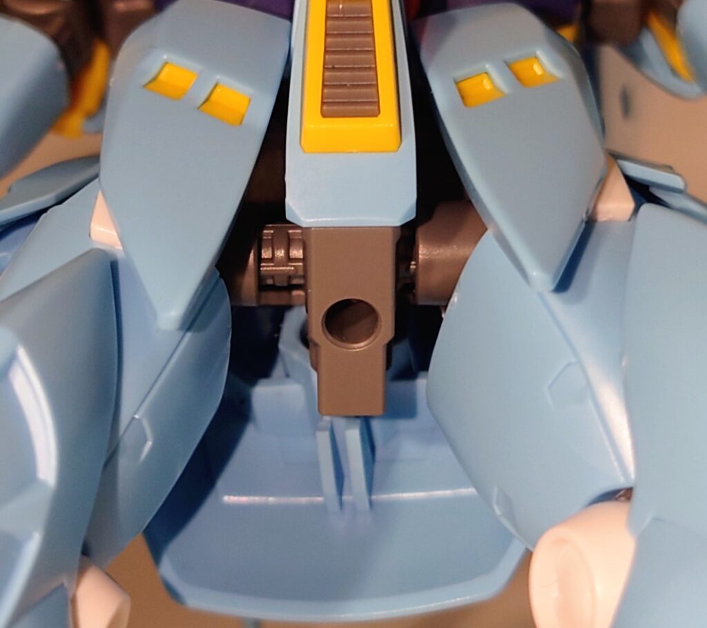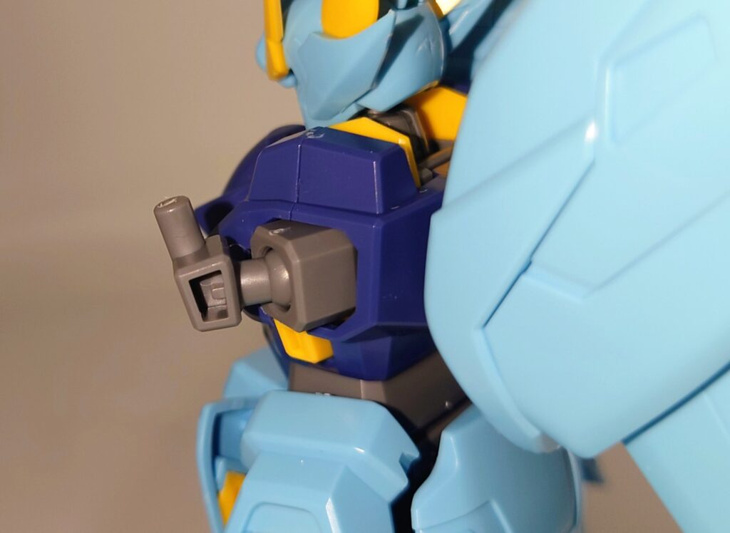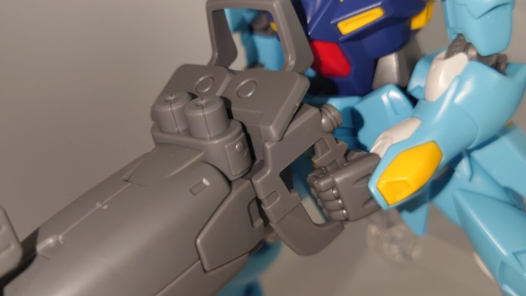 ブラックホールキャノンは持ち手を分割する形で保持されます。基部はPCボールジョイントで可動しある程度融通が利く構造。更に下部にはスタンド対応の2ミリ穴が存在